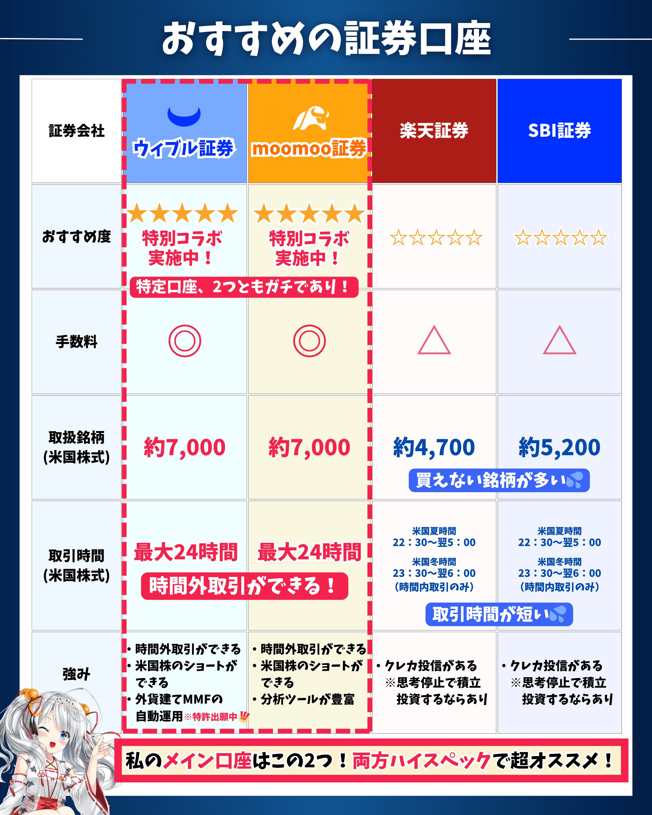 最低でもウィブル証券かmoomoo証券のうちのどちらか1つ、できれば2つ保有しておきたいところです。