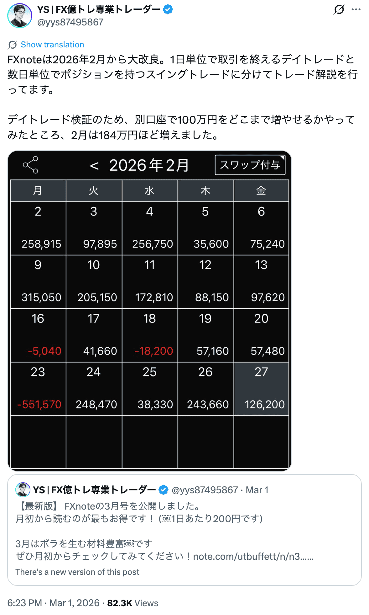 そしてFX noteも開始から約半年が経過していますが、2月に凄まじい実績を出しています!