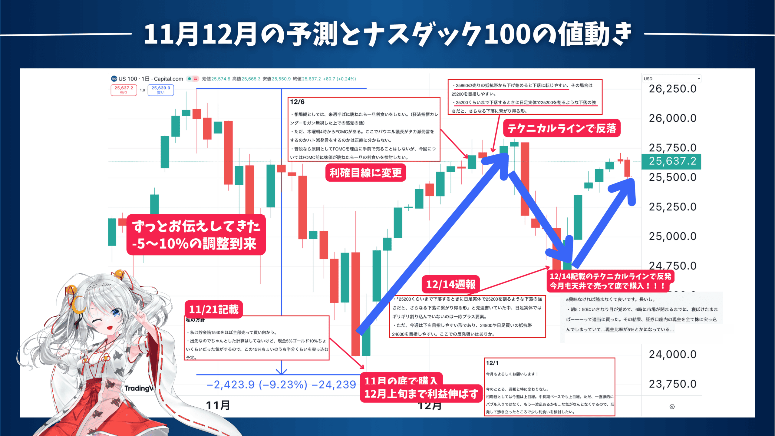 2025年11月から12月に調整相場で損失回避&底値で仕込み成功!