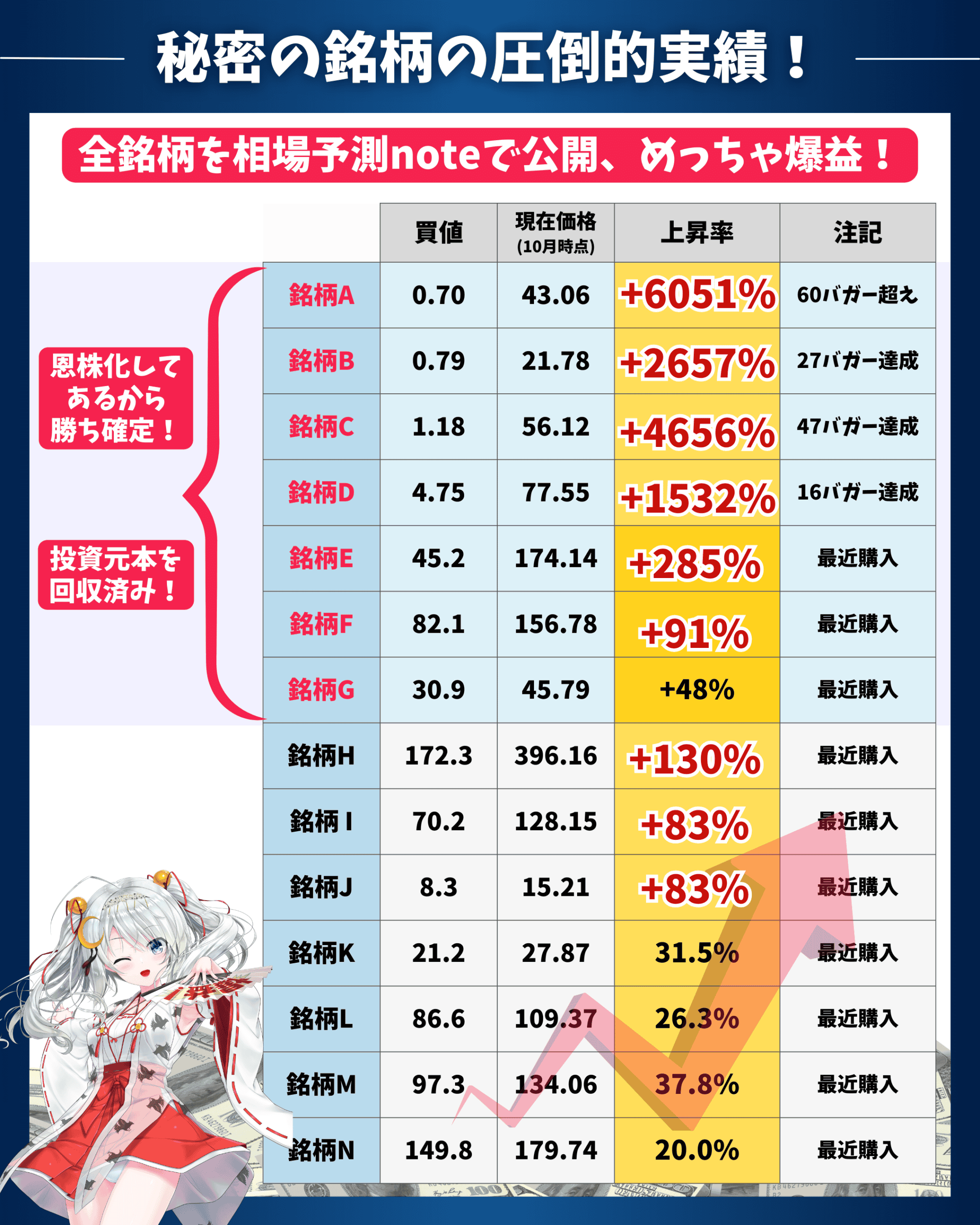 初期からの読者さんの中には10月時点で50バガーを達成している方もいます!