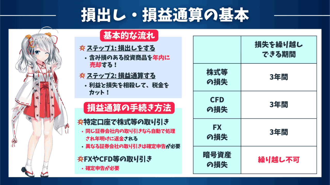 この確定した損失と、今出ている利益を相殺することで節税できるんです。
