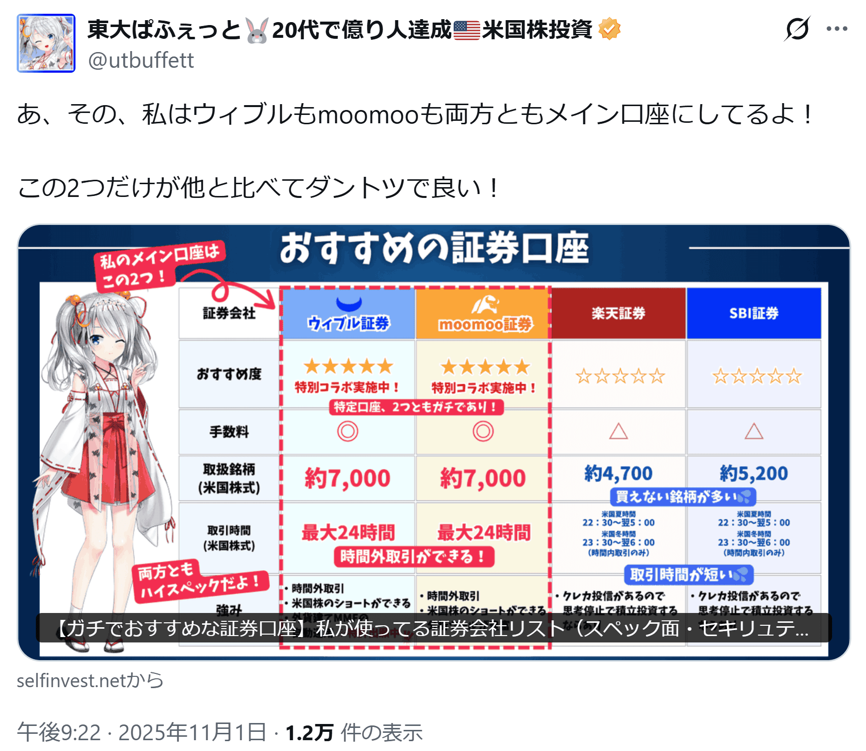 私はウィブル証券やmoomoo証券をメイン口座にしているよ!