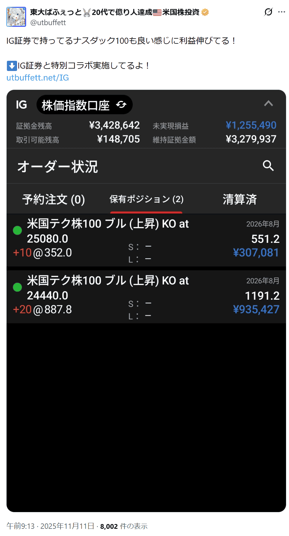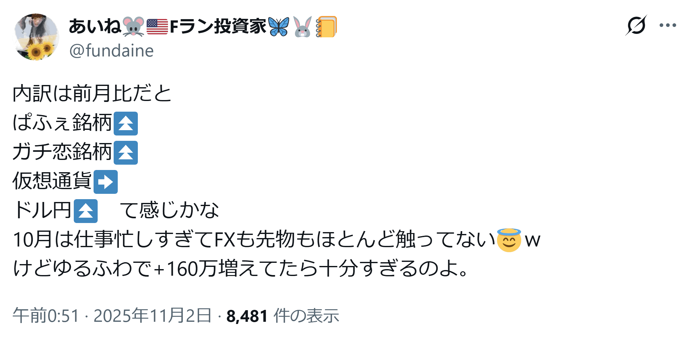 今月も爆益して資産が増えて株式市場と共に楽しく過ごせています。