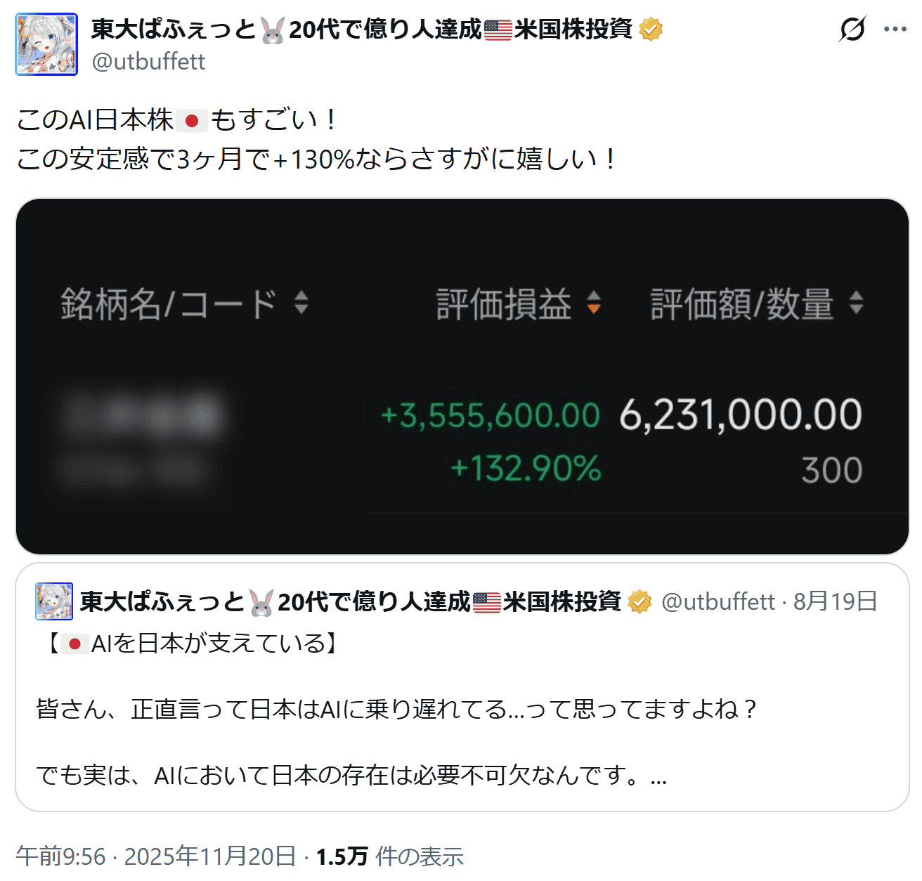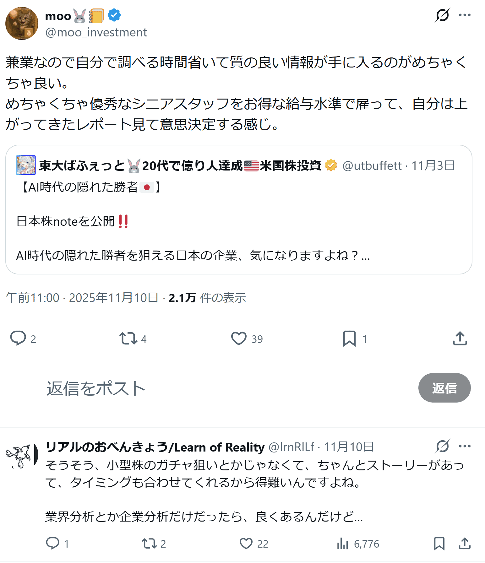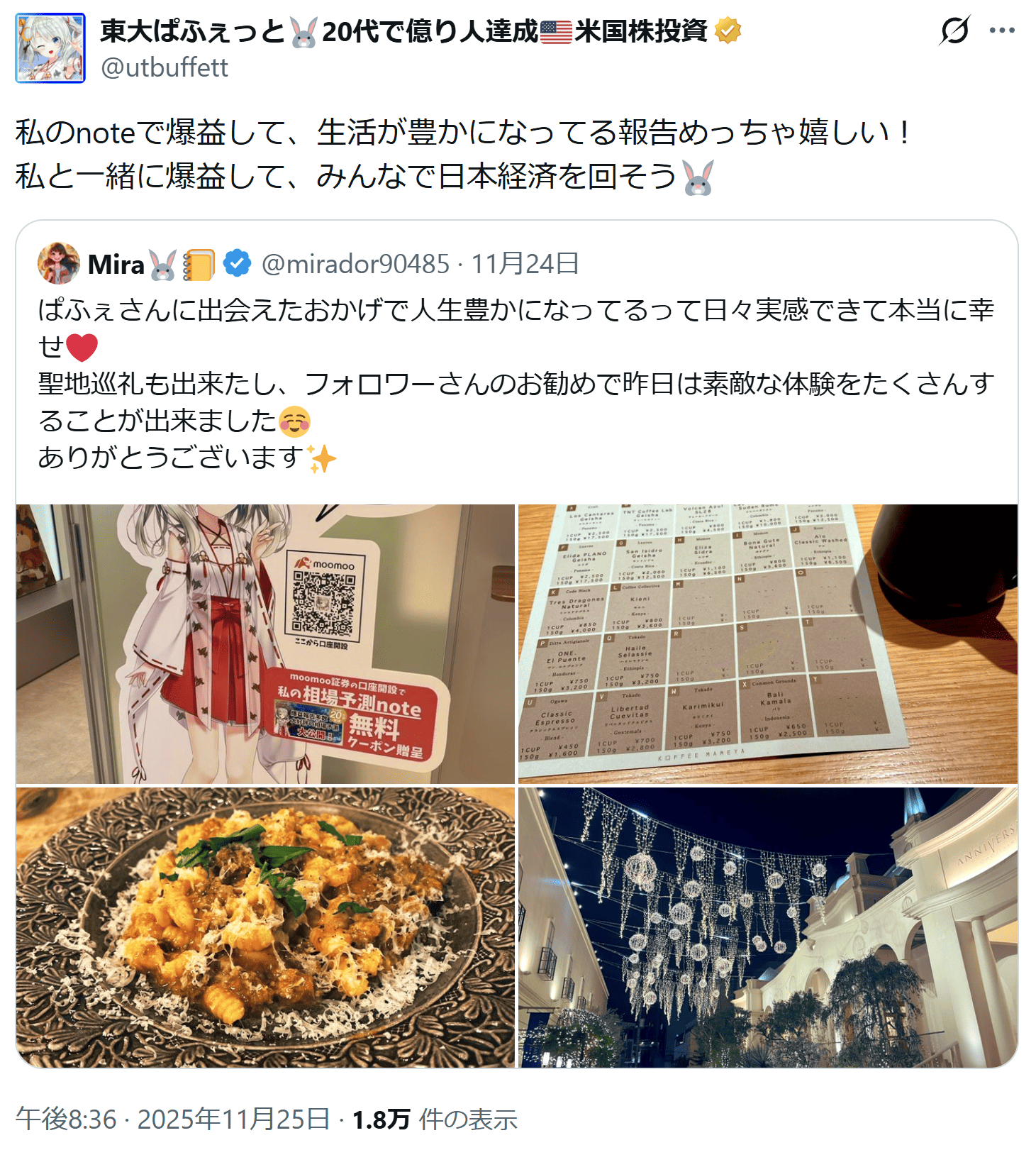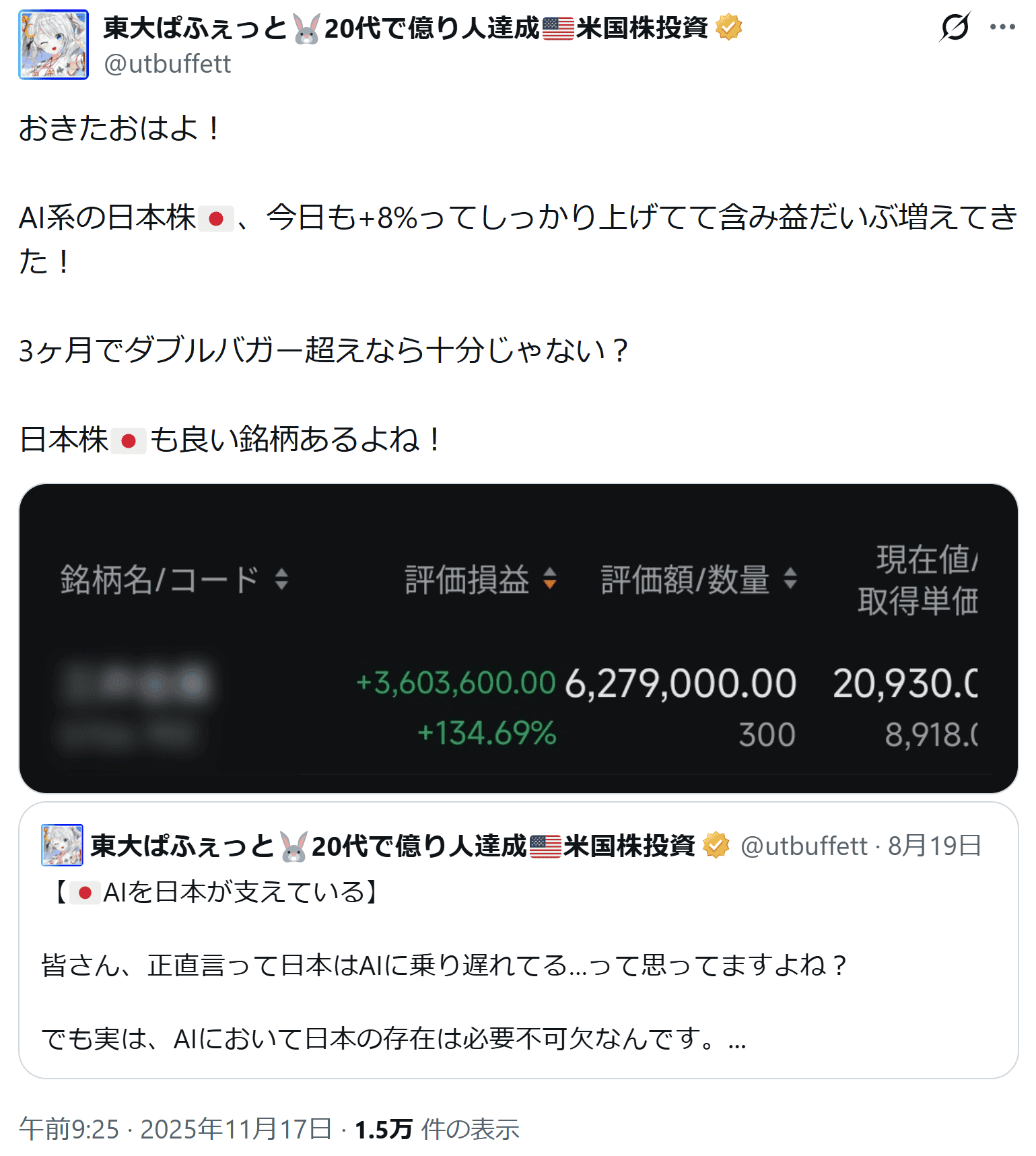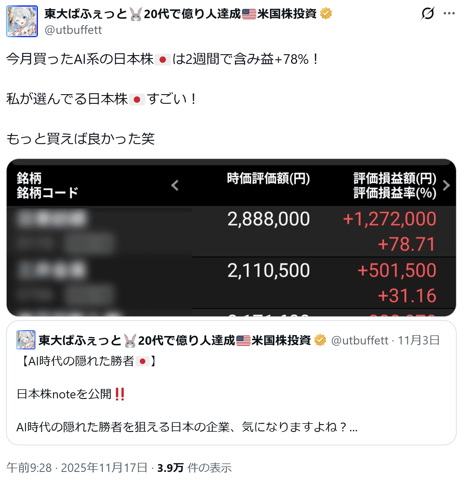 日本株noteで紹介した銘柄がダブルバガー達成🐰