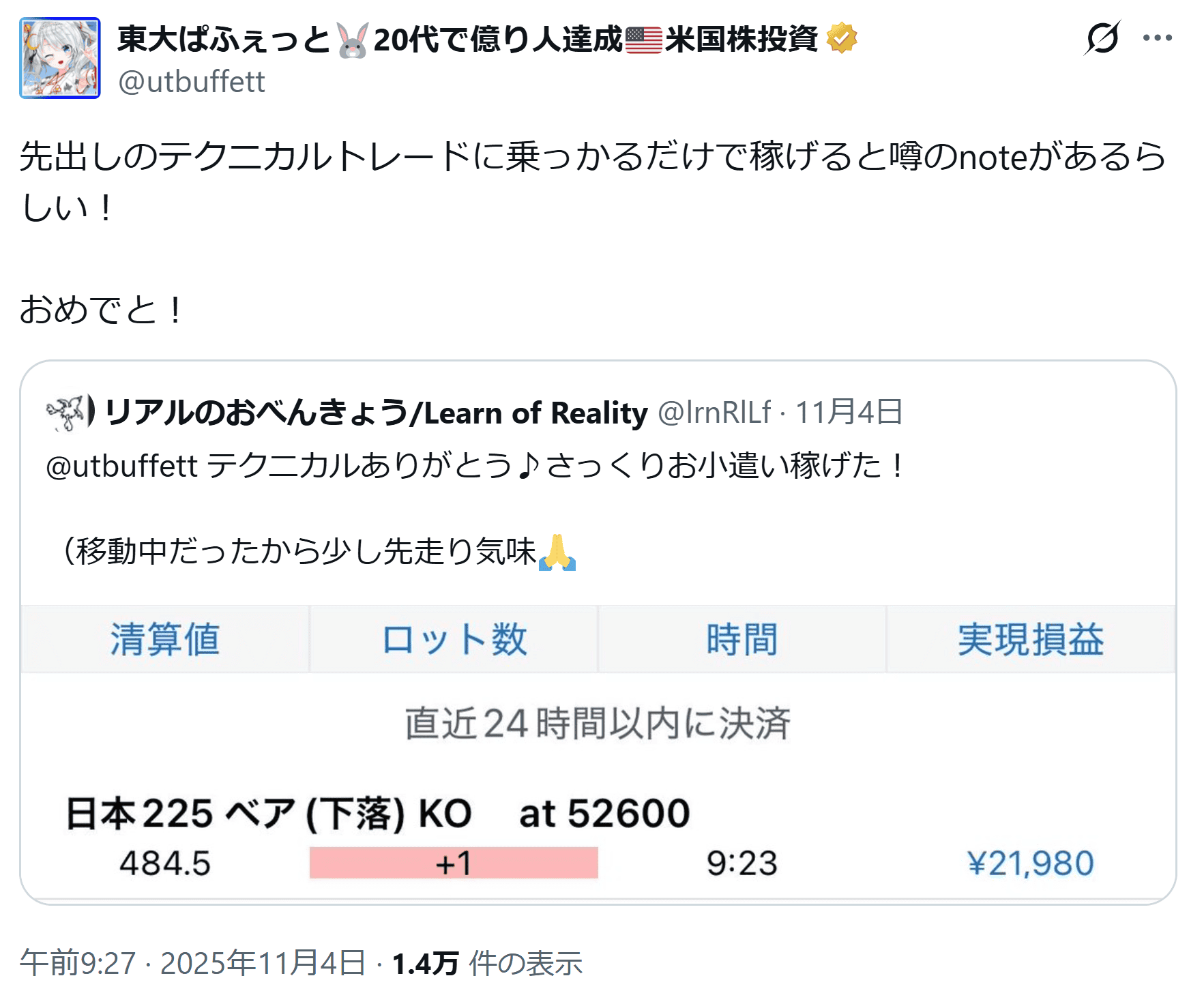 日本株noteはテクニカル分析見ながら日経トレードするだけで爆益すぎると噂!
