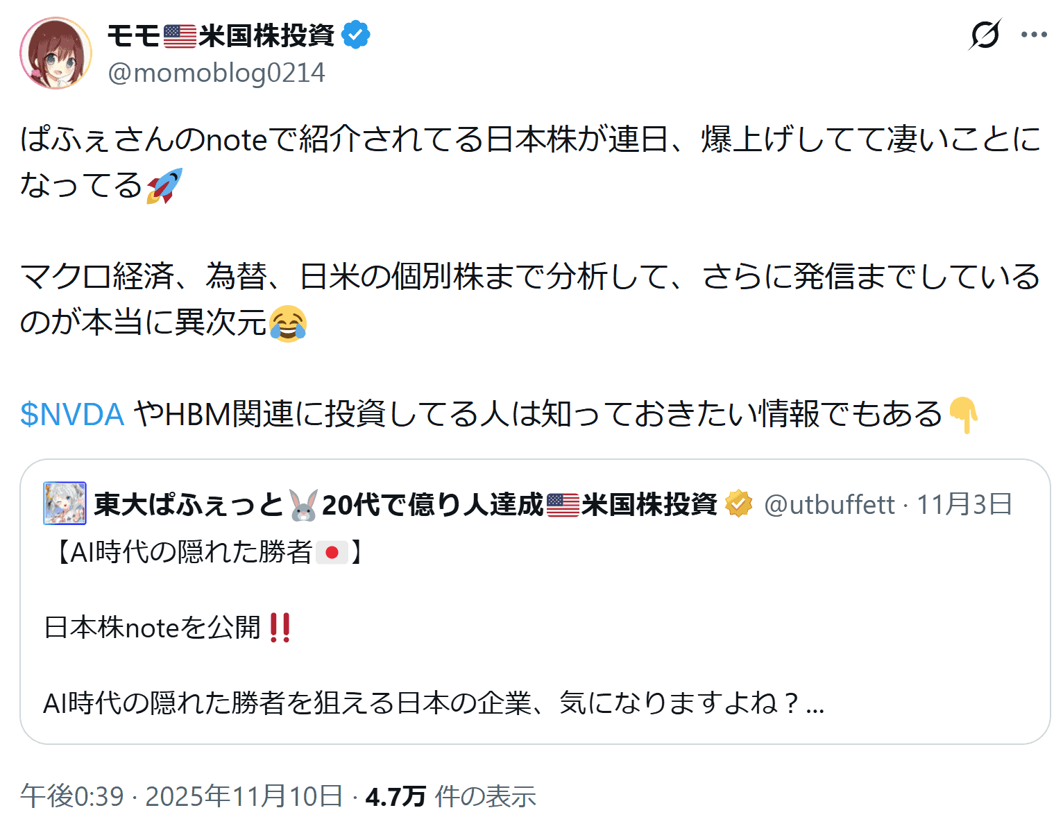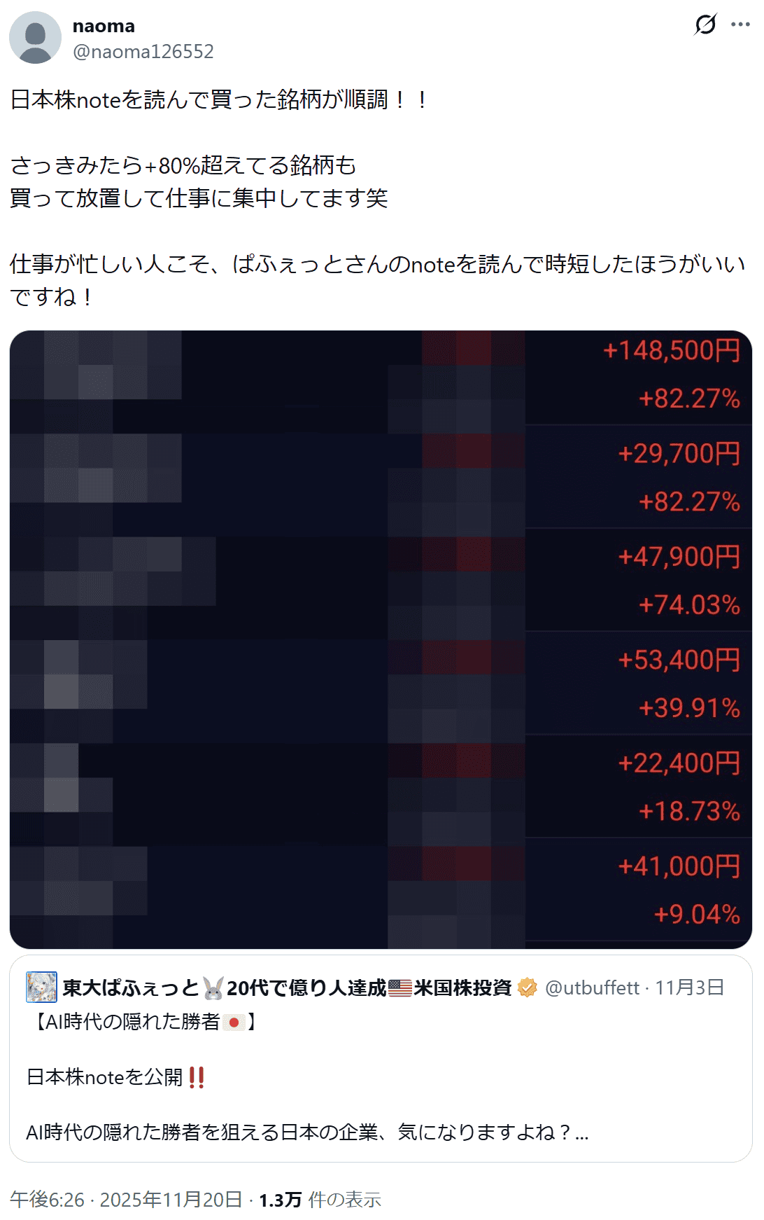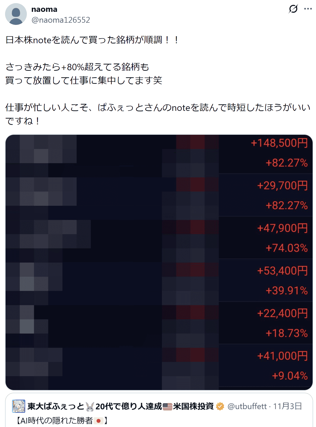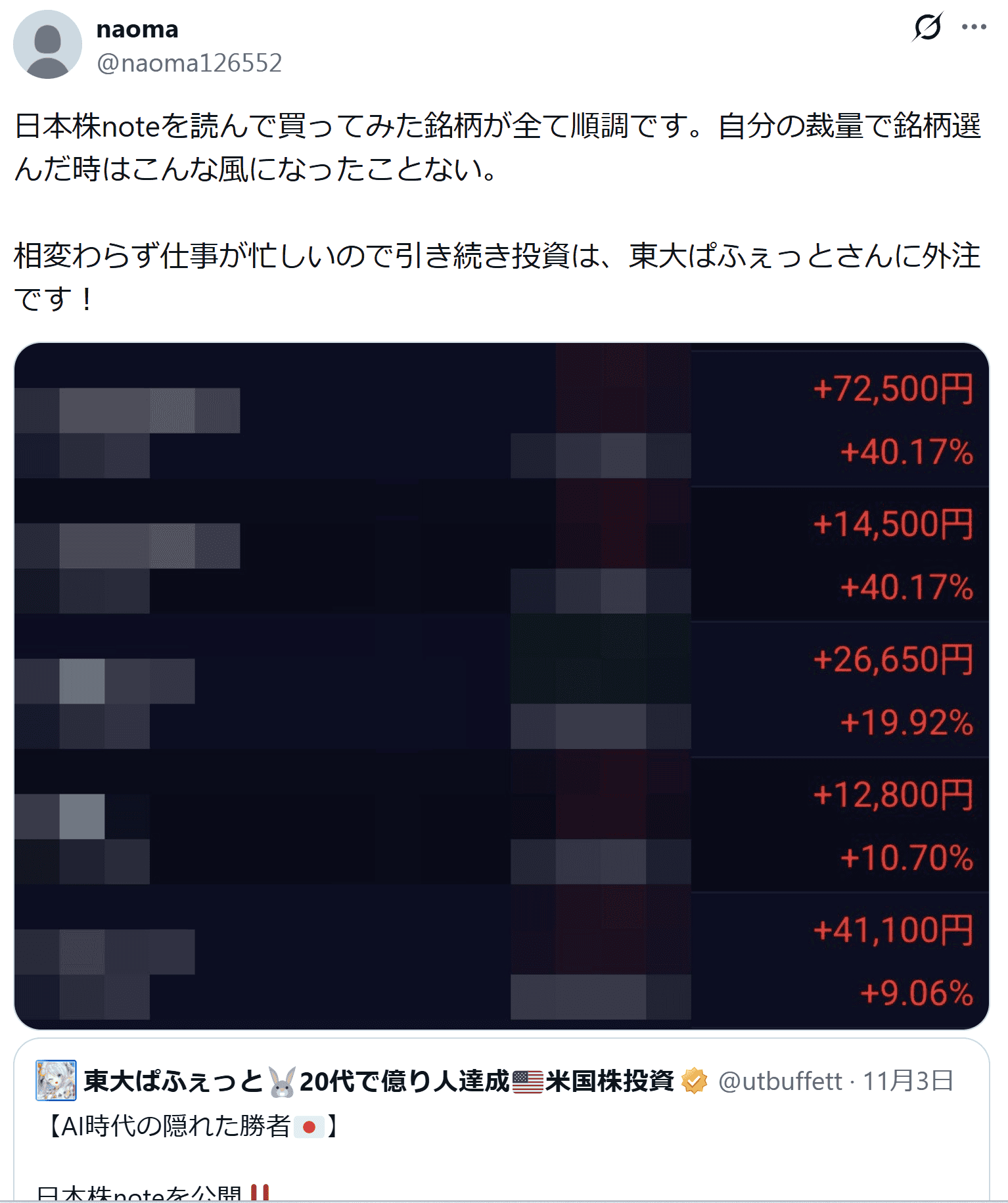 米国株でも爆益!相場予測noteの銘柄すごいね!
