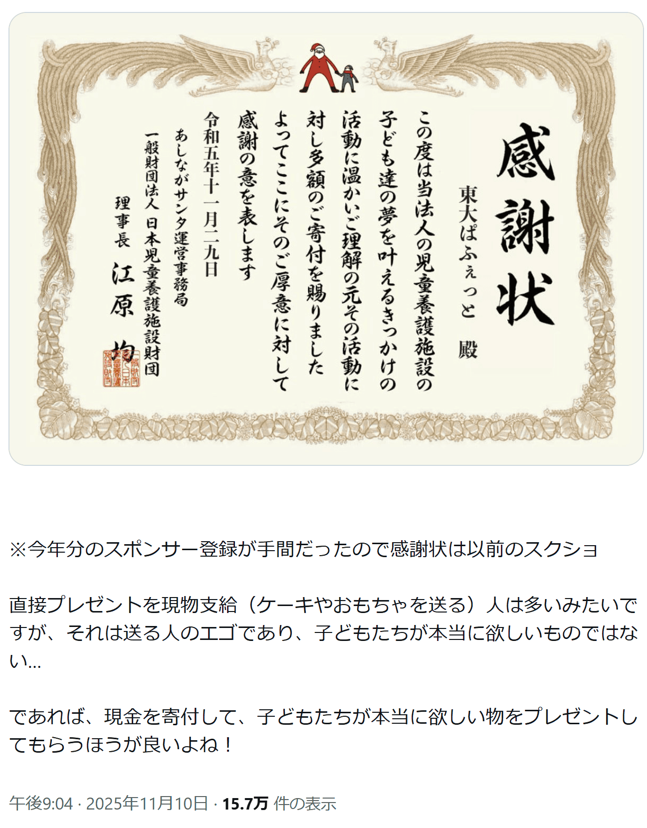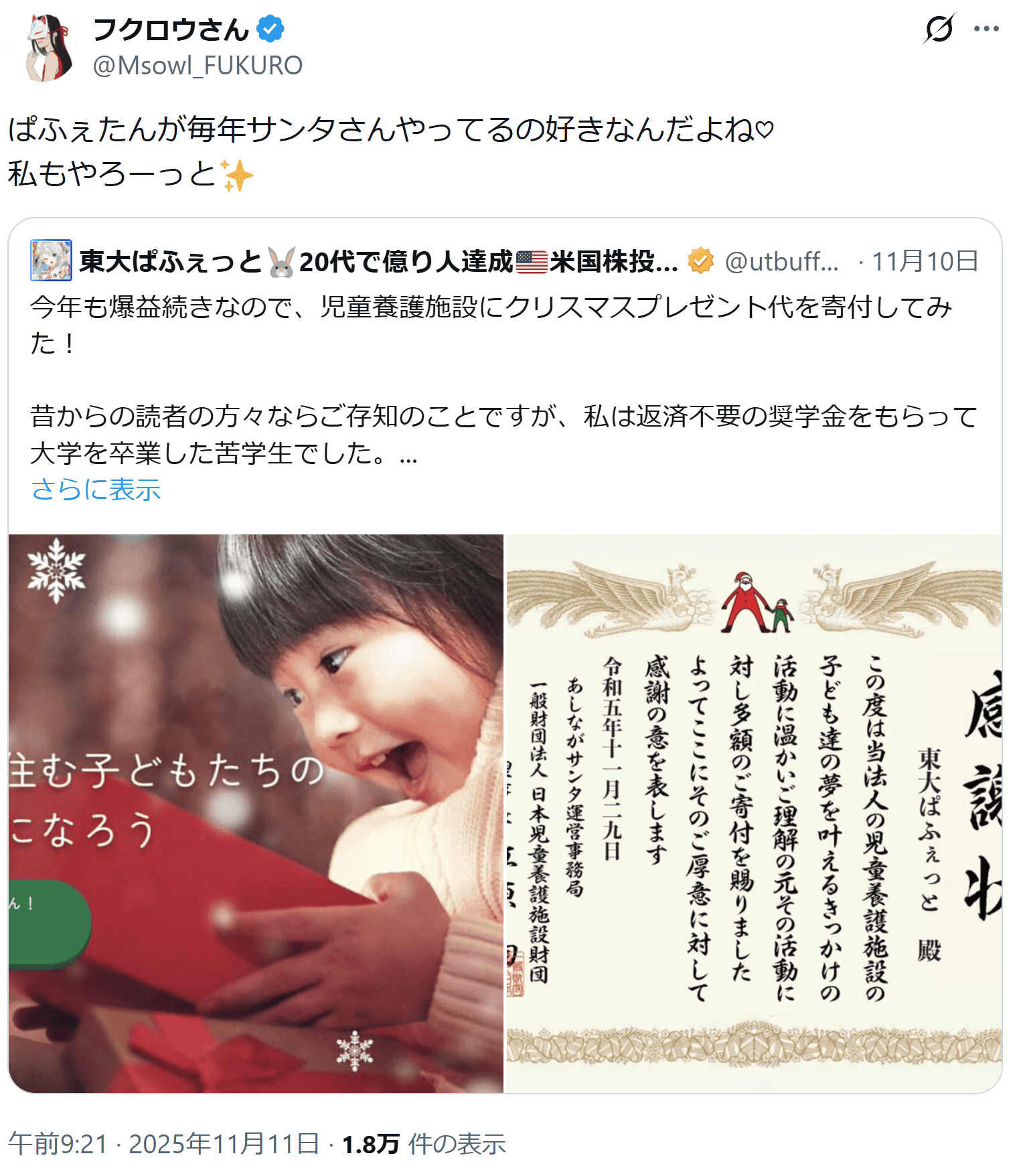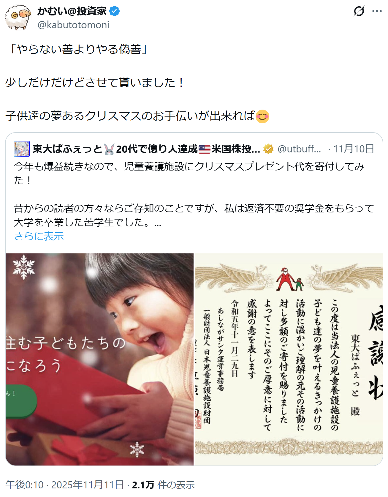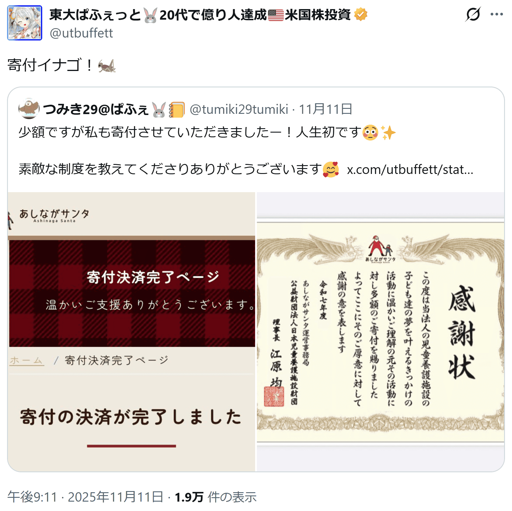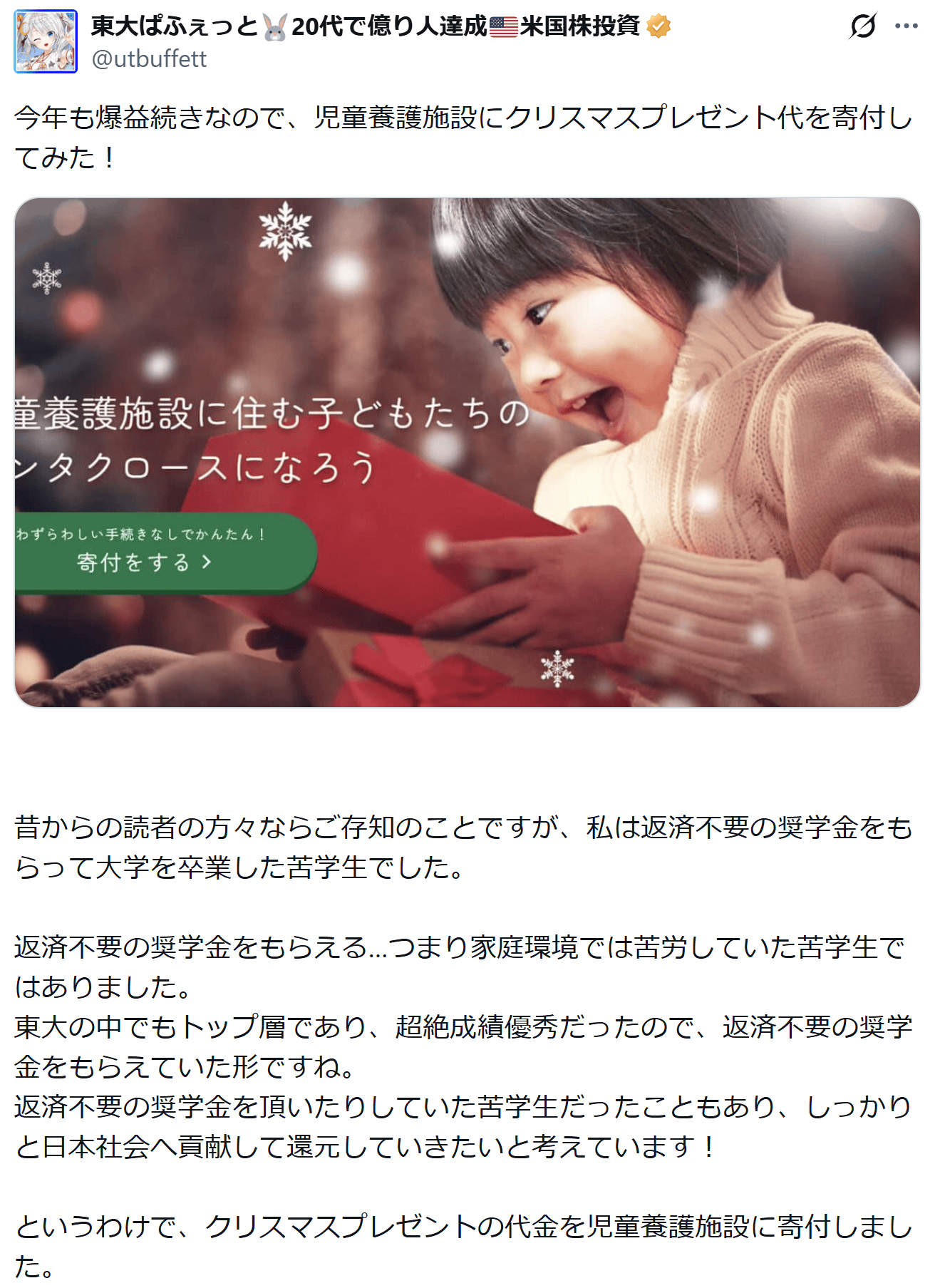 相場予測noteの通り今年も爆益でした!私は毎年やっている寄付を今年もしたよ!