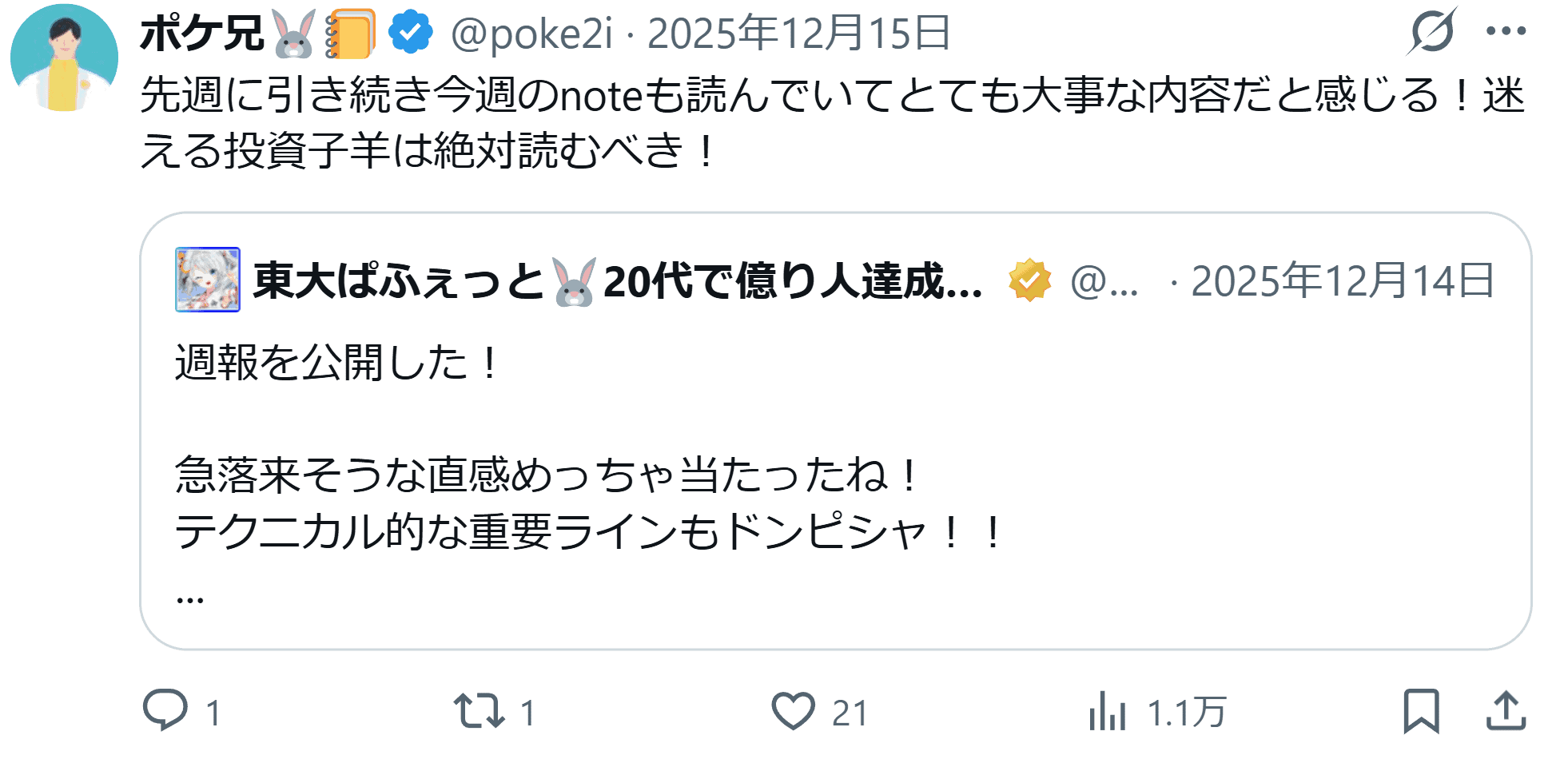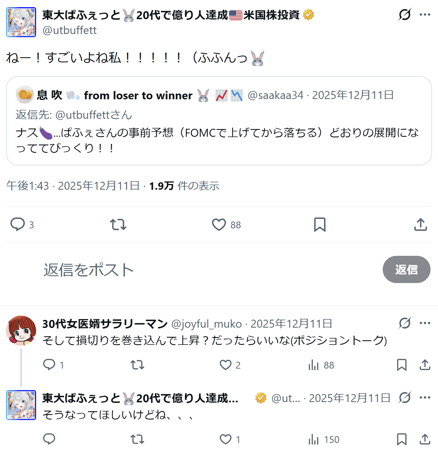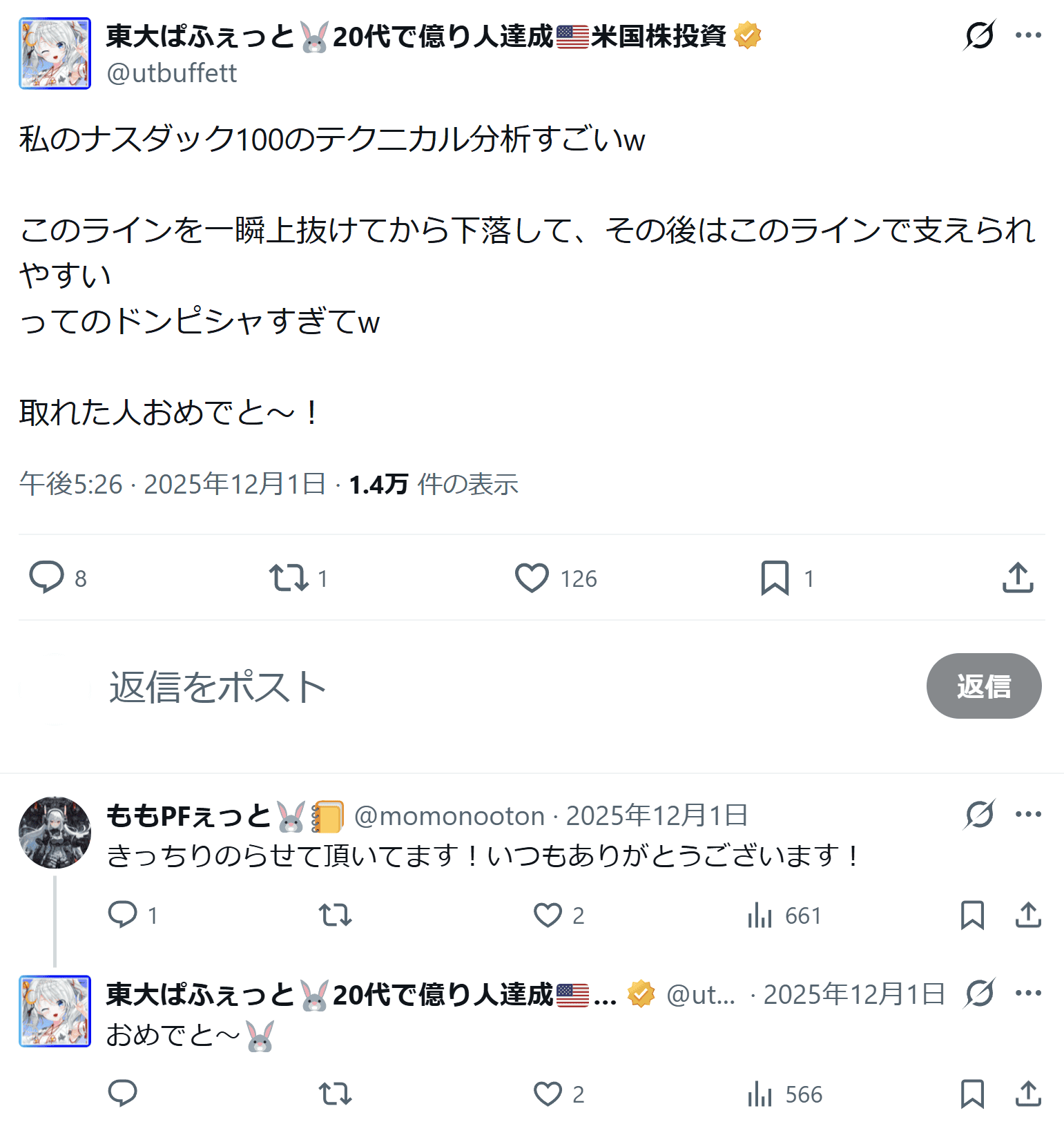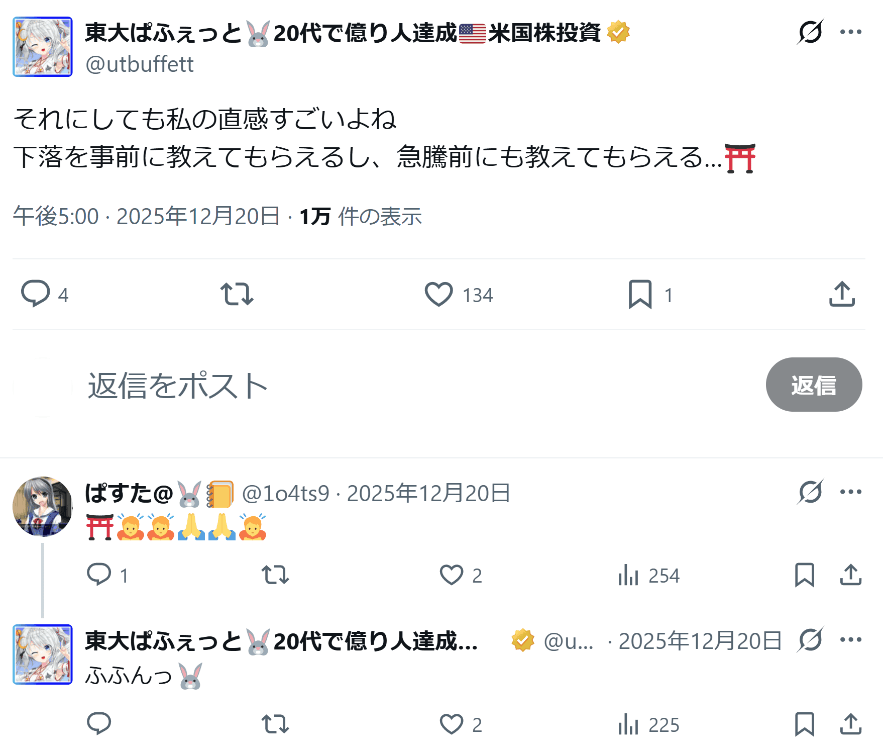 正直、ここに載せているコメントはごく一部です。これだけ多くの読者さんから爆益報告をいただけてることが私が先出しで相場や個別銘柄を当て続けている証左になりますね🐰