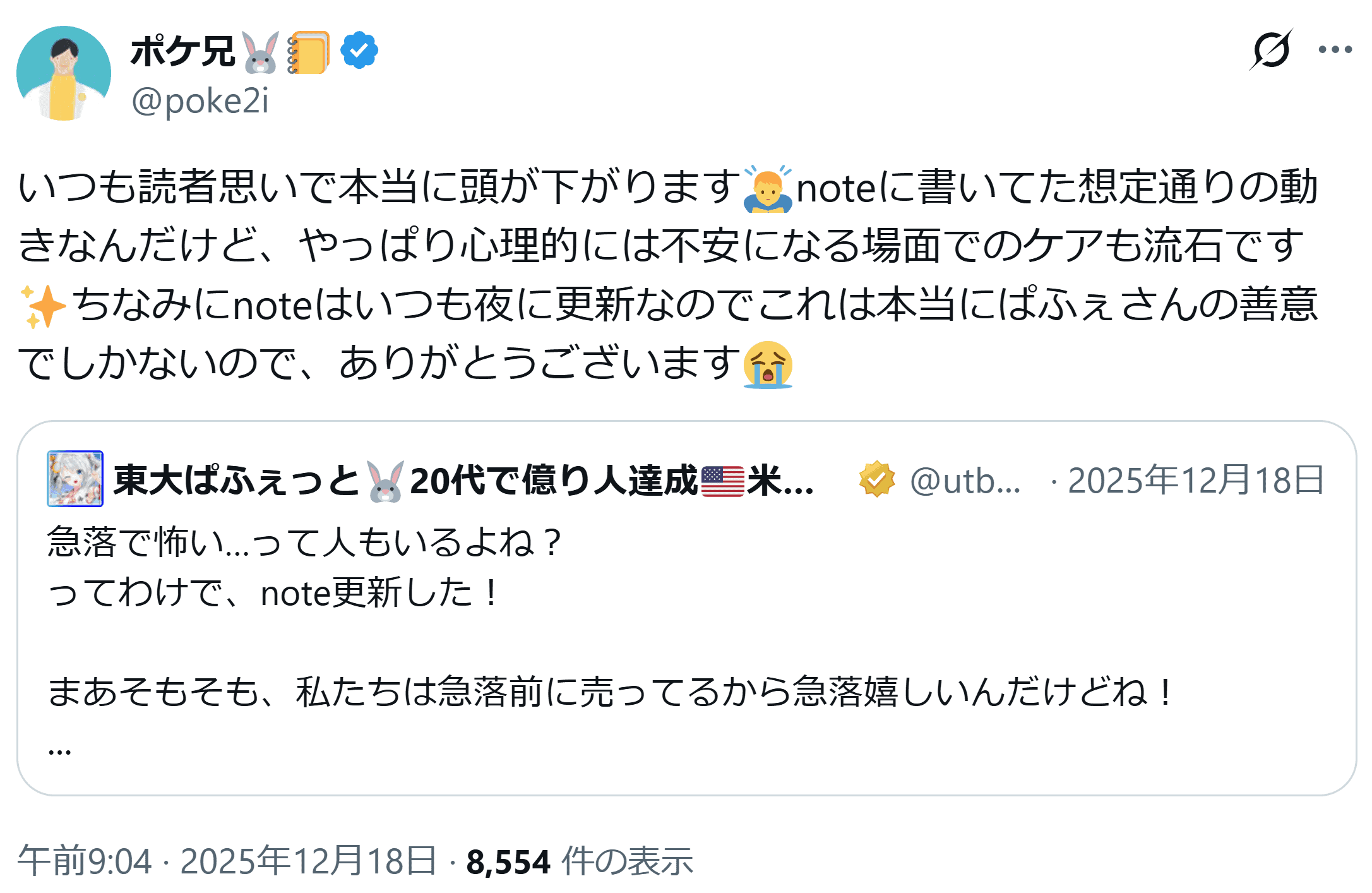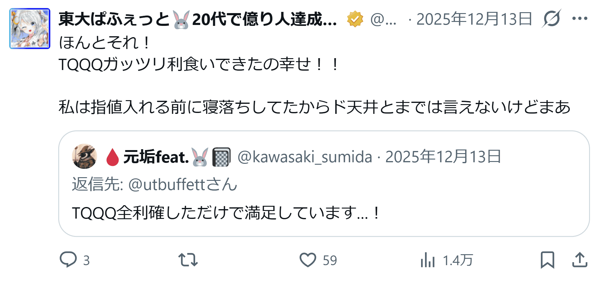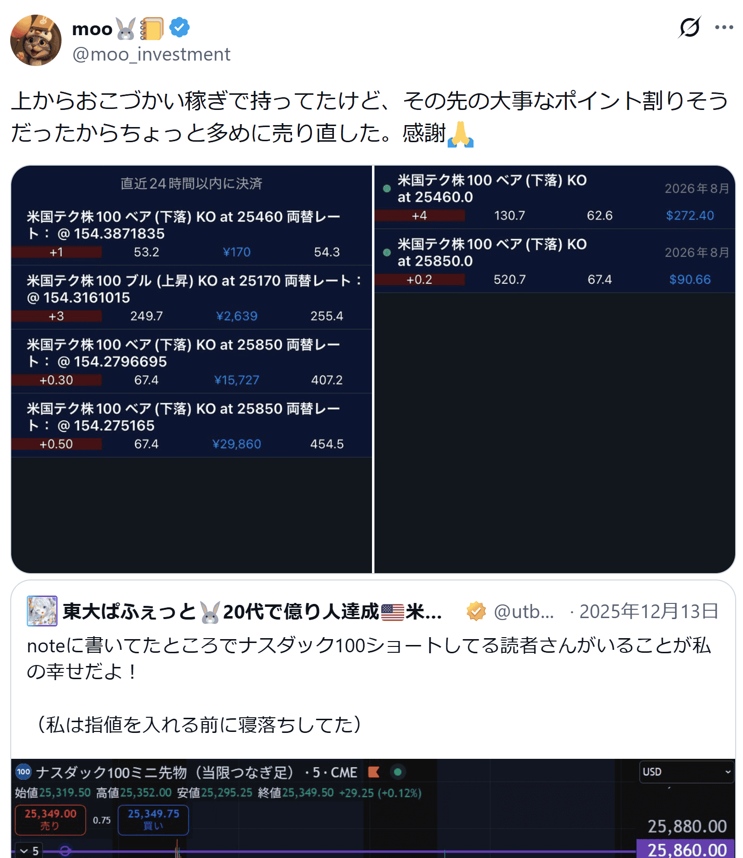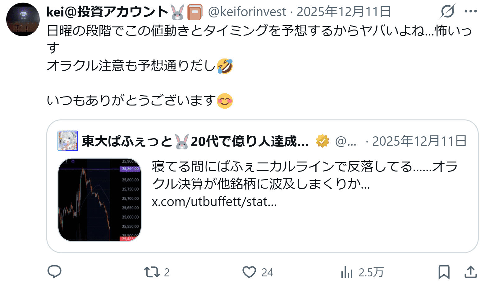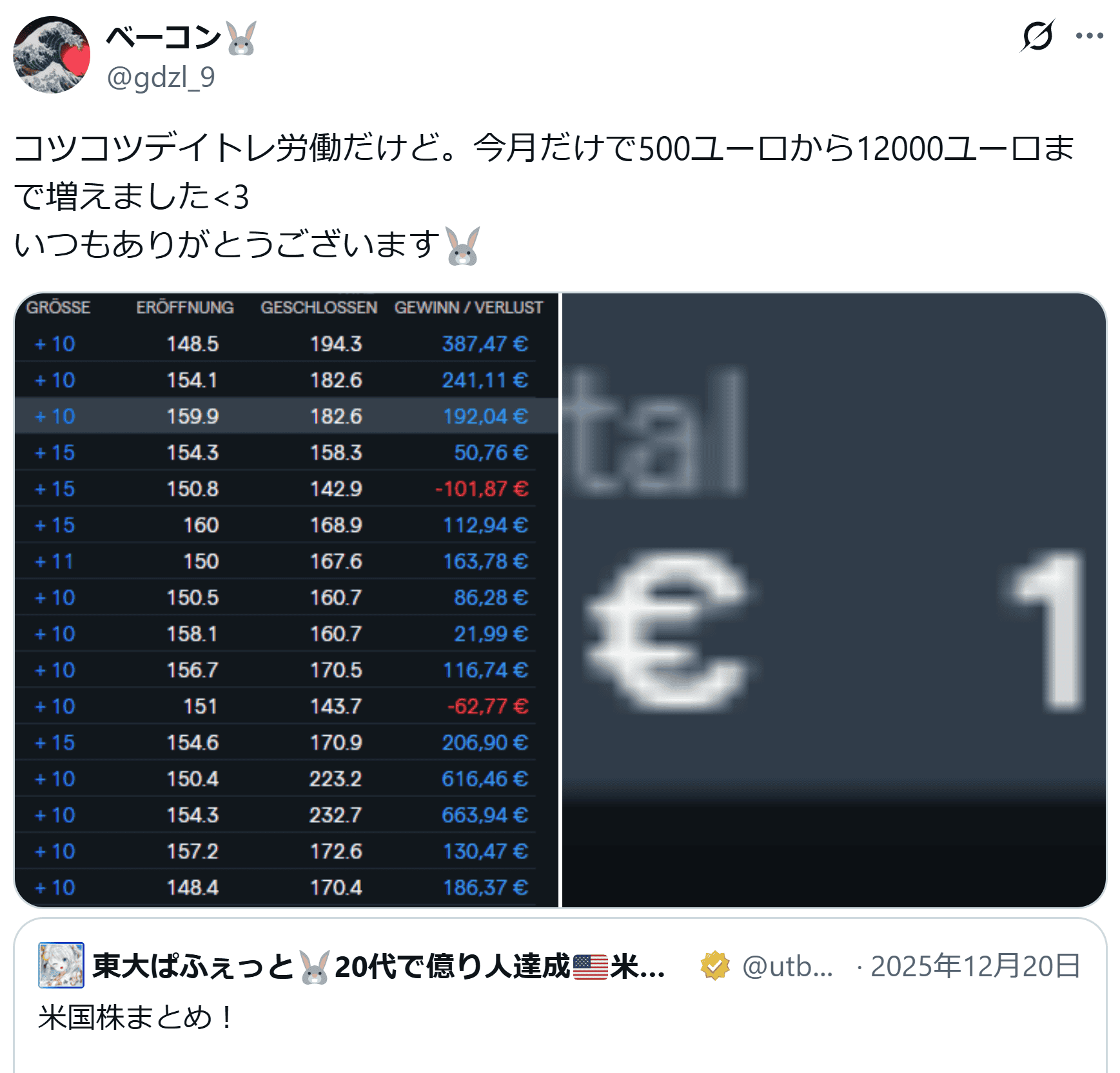 12月の株式市場も爆益でしたね!相場予測noteで紹介していたテクニカル分析(ぱふぇニカル)の精度がすごく良かった🐰