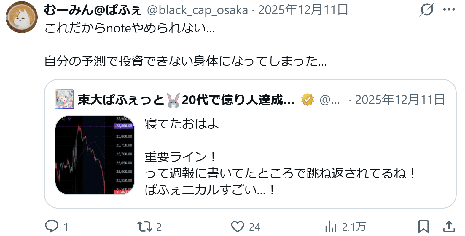 相場予測noteではぱふぇニカル(テクニカル分析)も紹介しています。