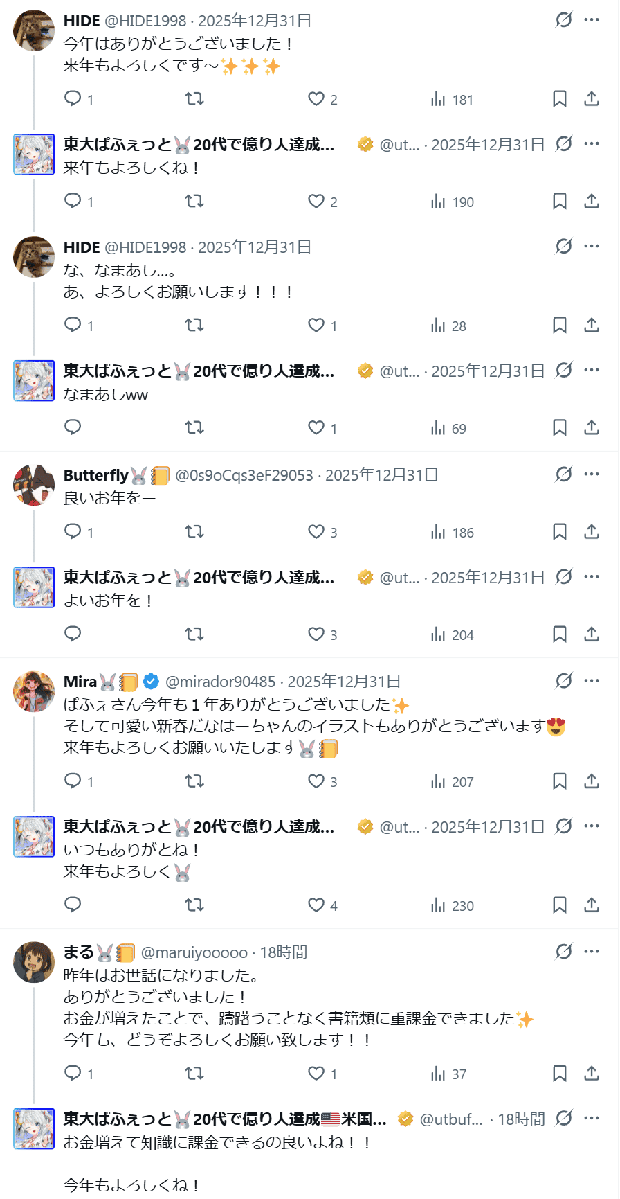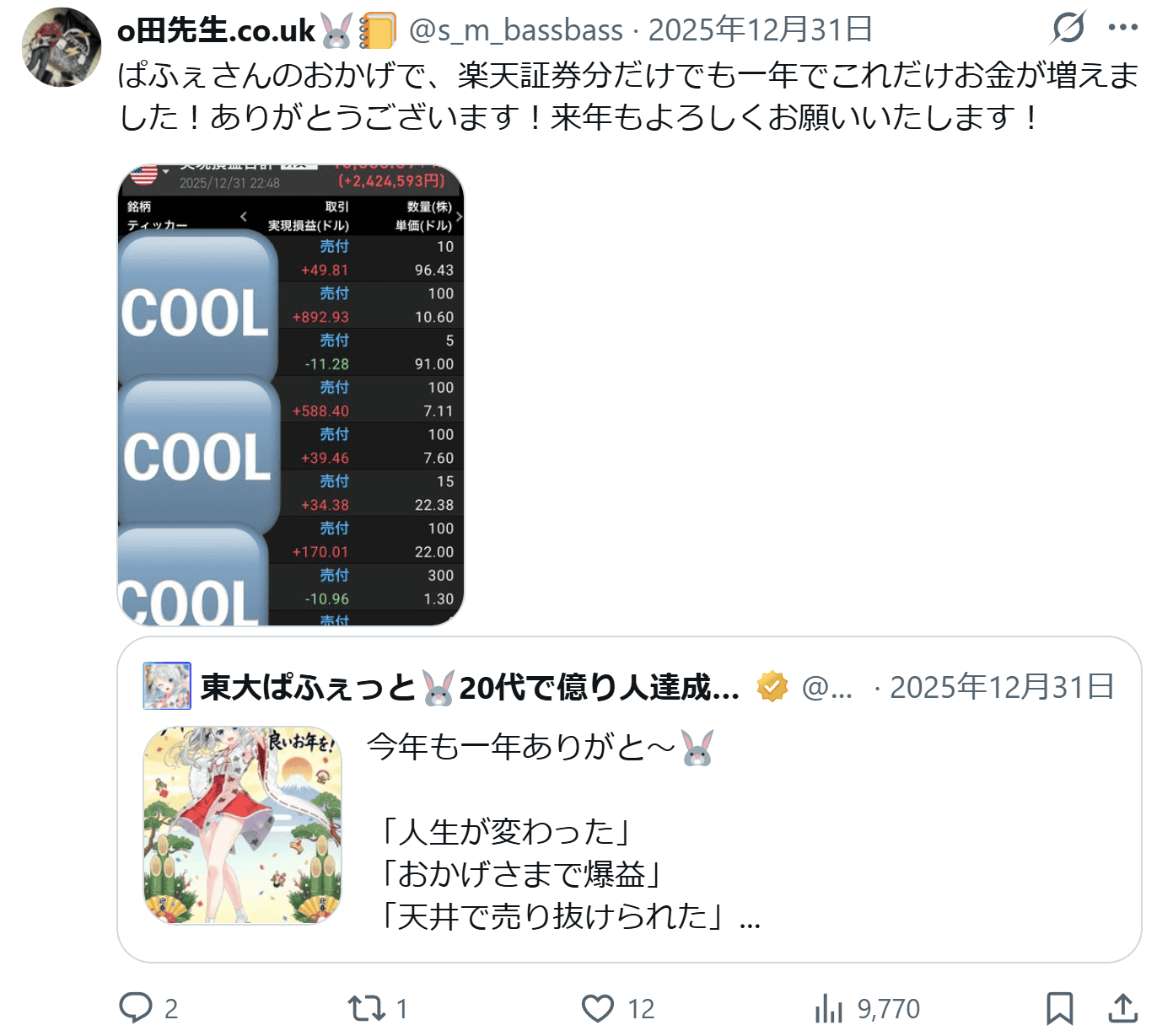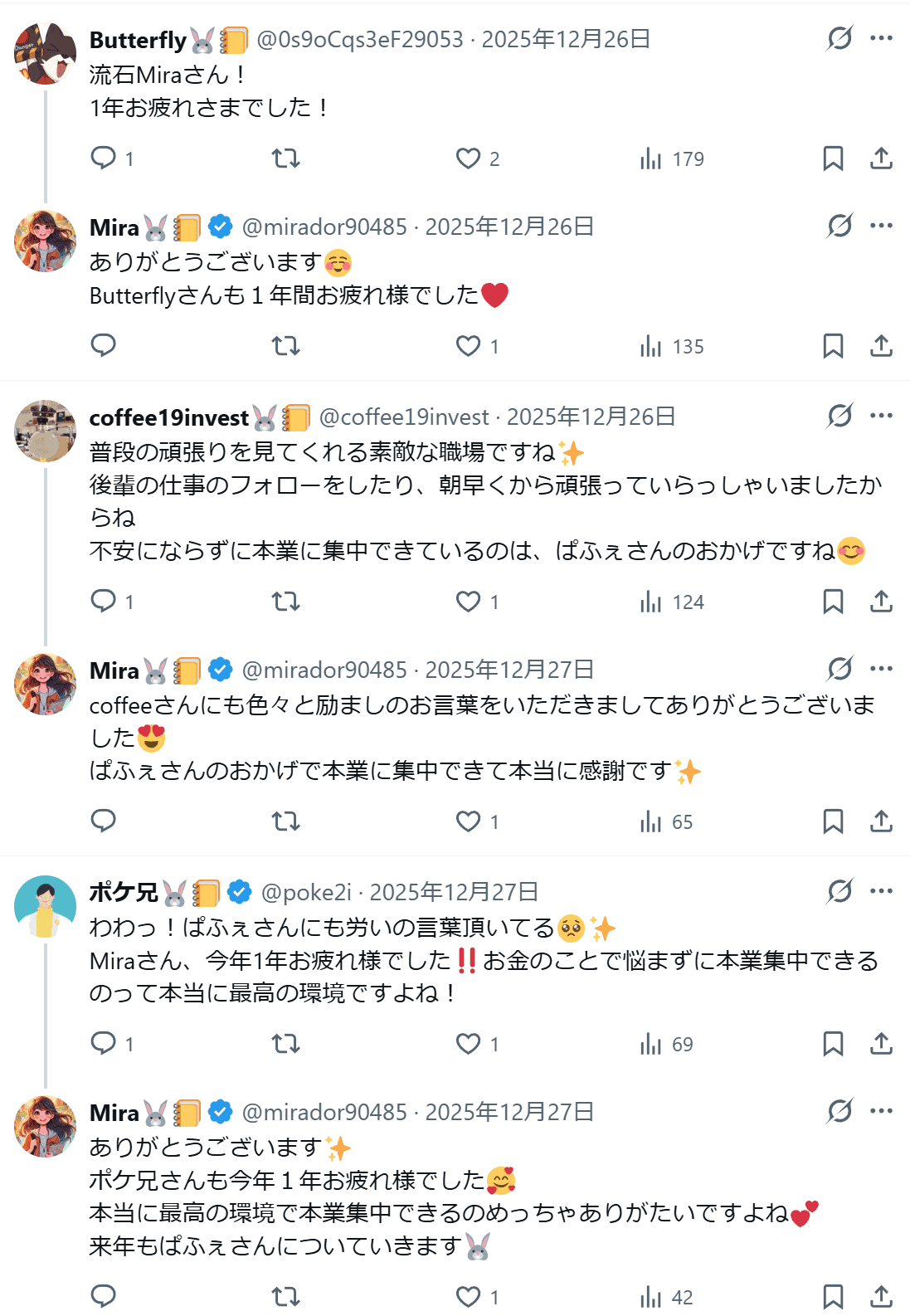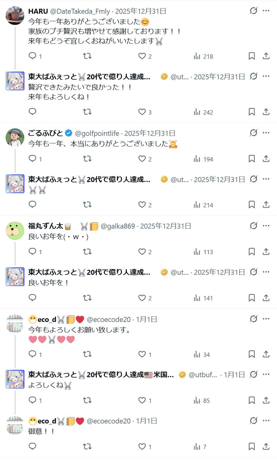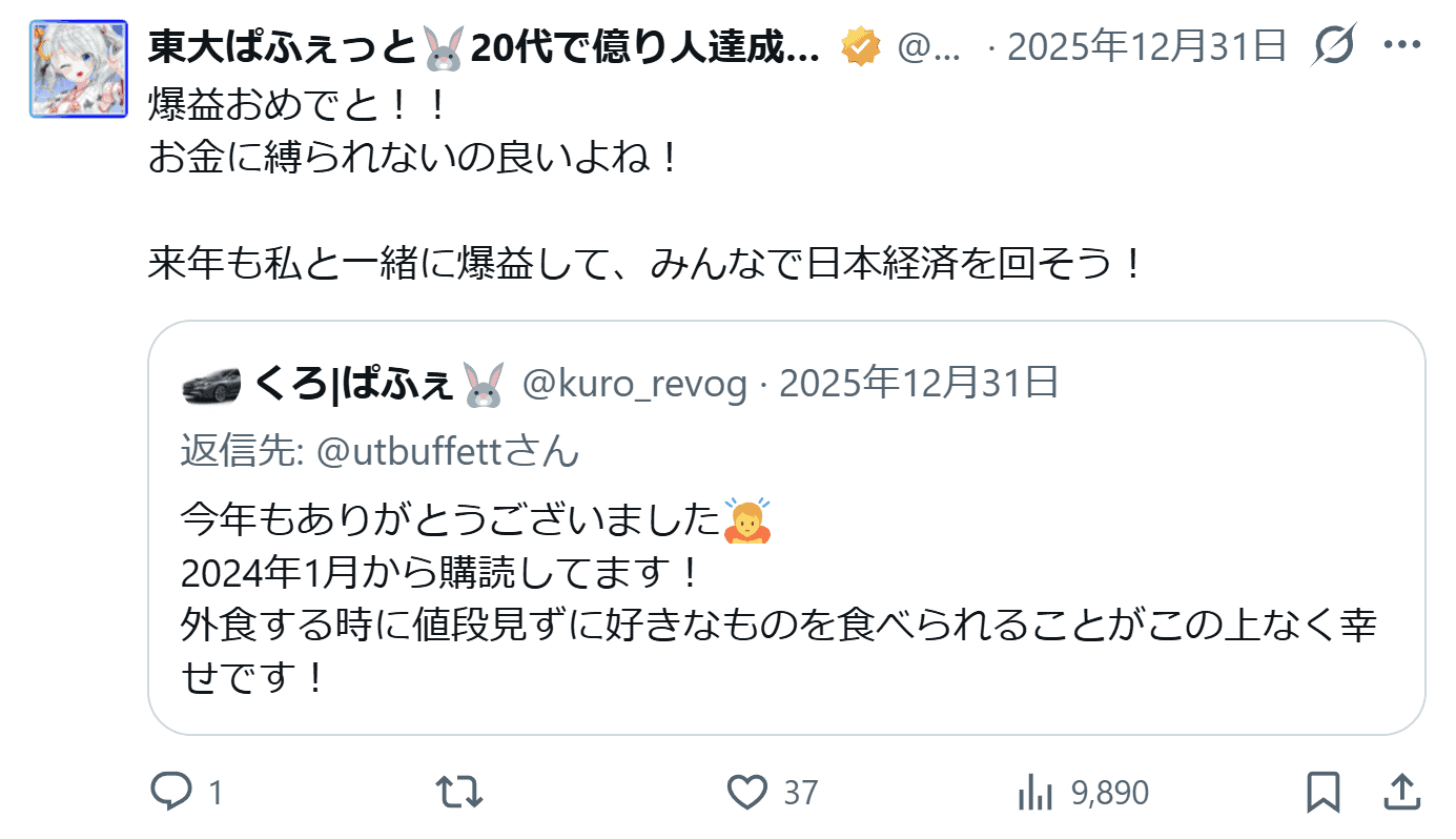 2025年も爆益でしたね!みんなからたくさんの爆益報告をもらって、とっても嬉しいよ!