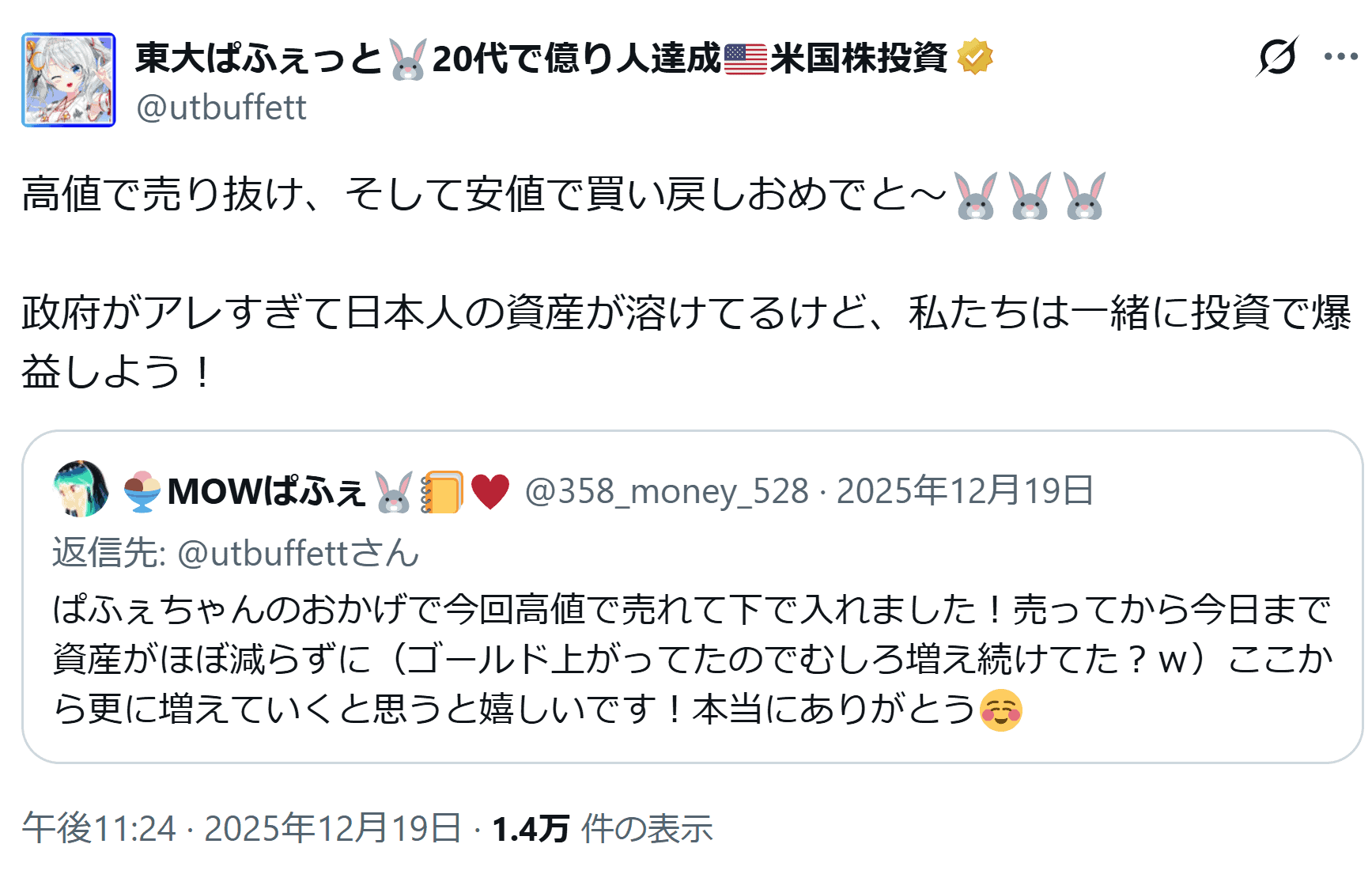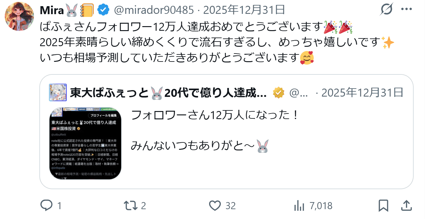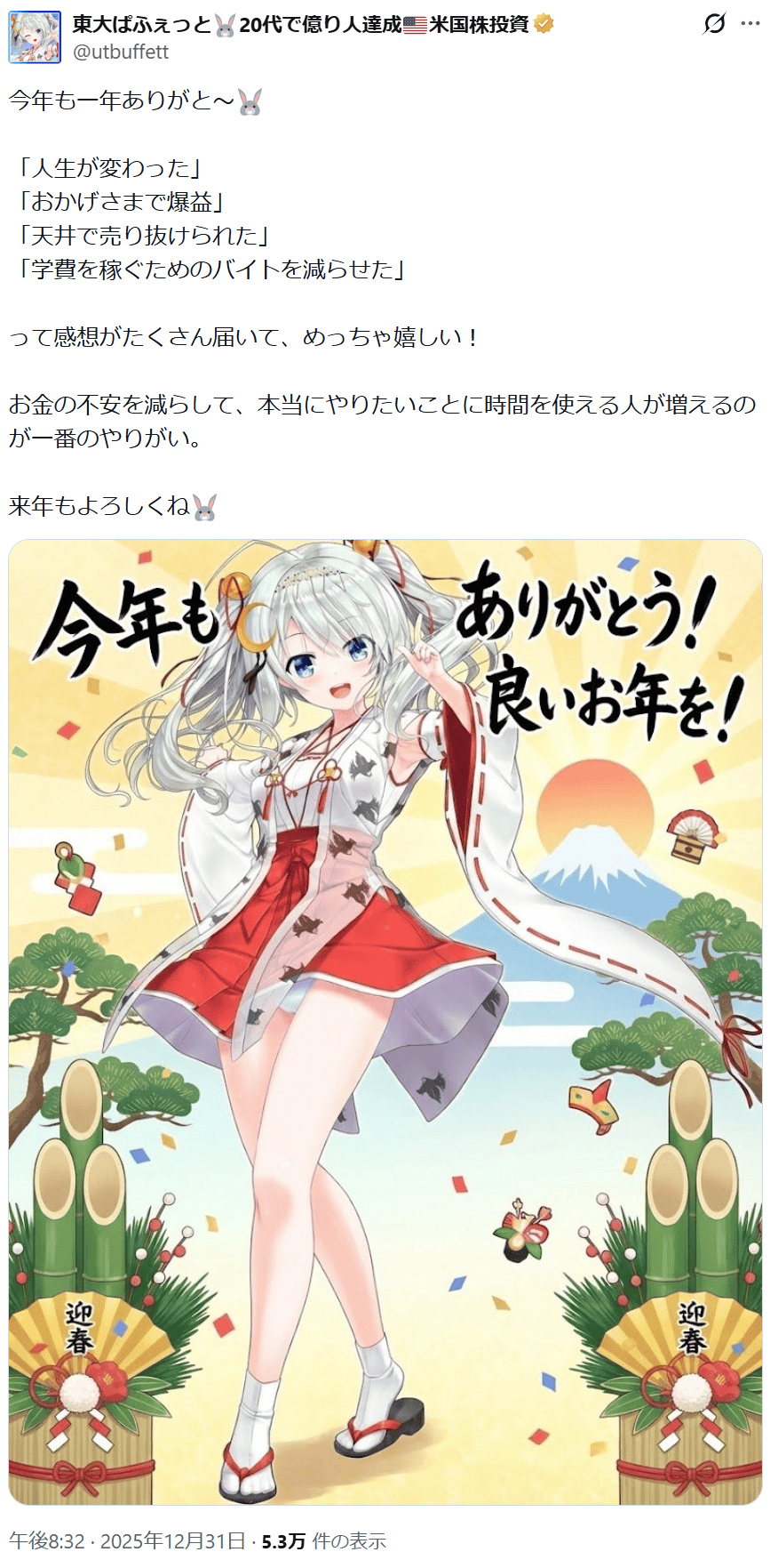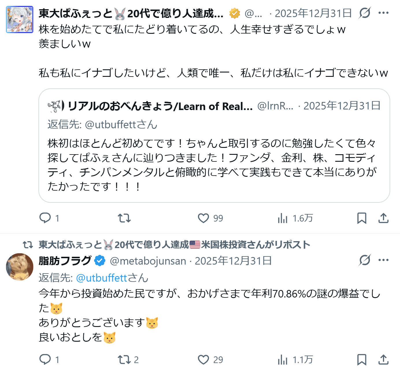 2025年も爆益でしたね!みんなからたくさんの爆益報告をもらって、とっても嬉しいよ!