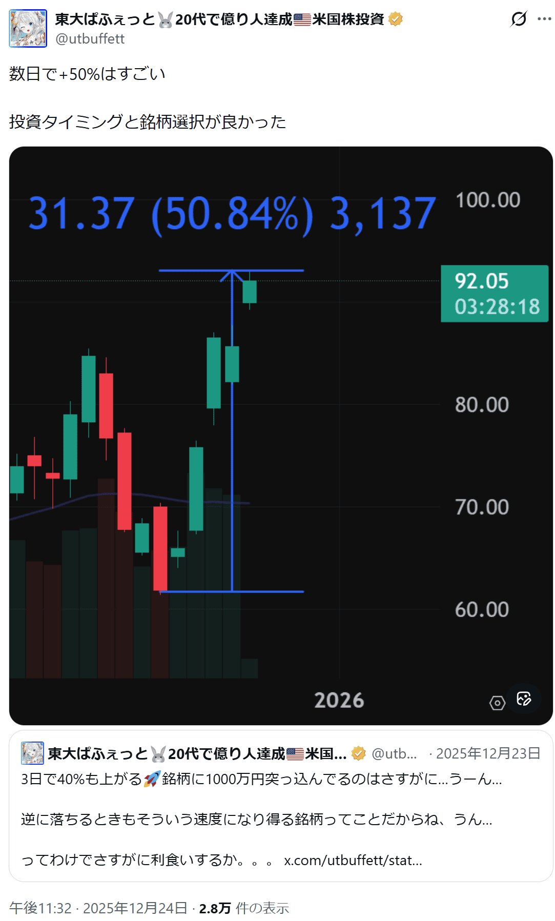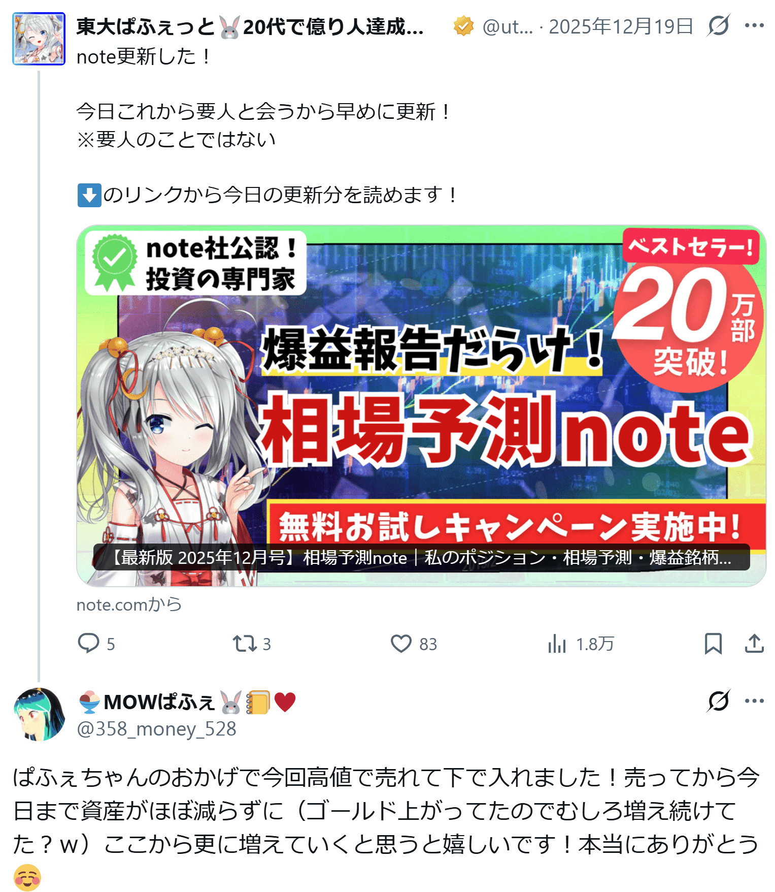 相場予測noteで紹介している個別株も爆上げ!数日で50%も上がるってすごいよね!