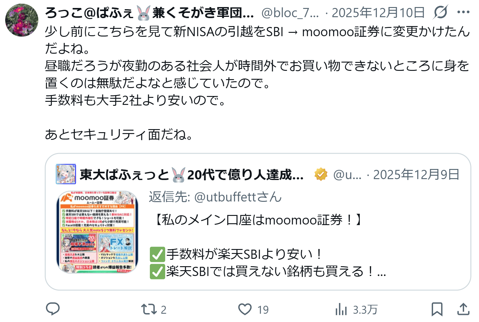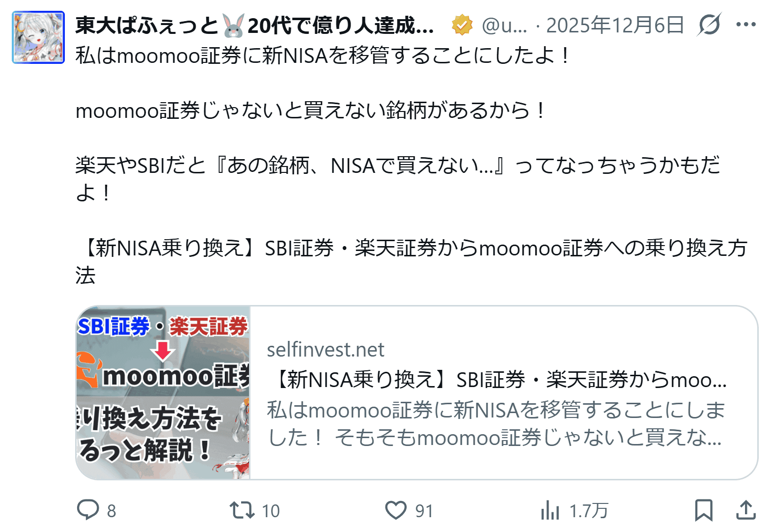 私はNISA口座もmoomoo証券へ移管したり、moomoo証券をメイン口座の1つで使っているよ!