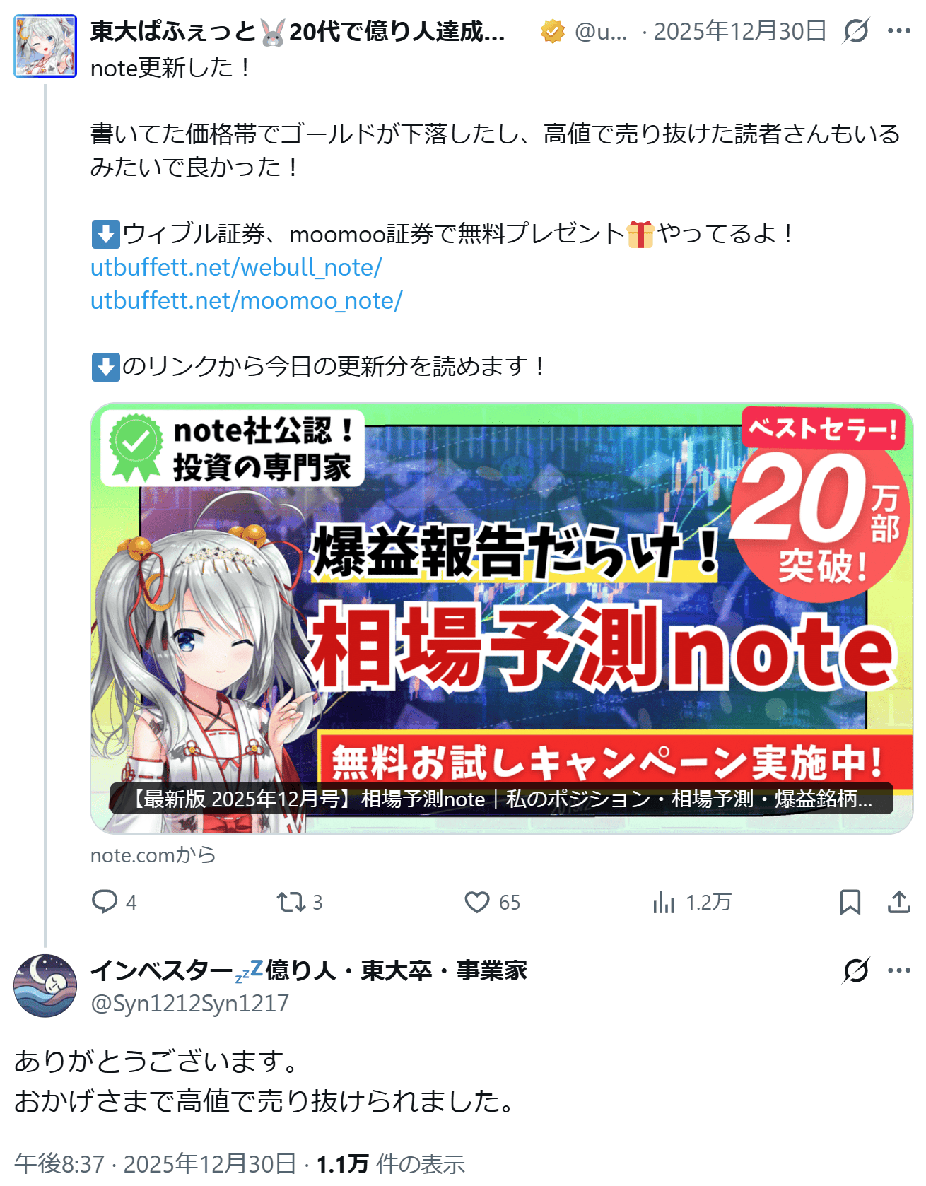 相場予測noteを読んでくださっている読者さん1年間ありがとございました!
