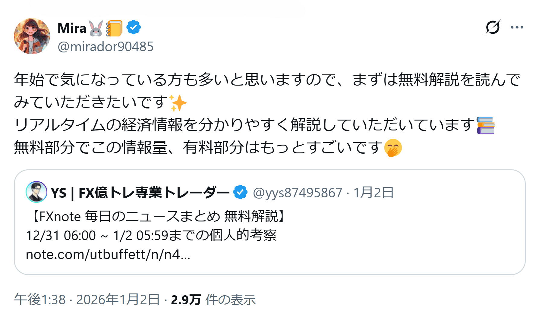 相場予測note同様、FX noteも月初から読むのが最もオトク!