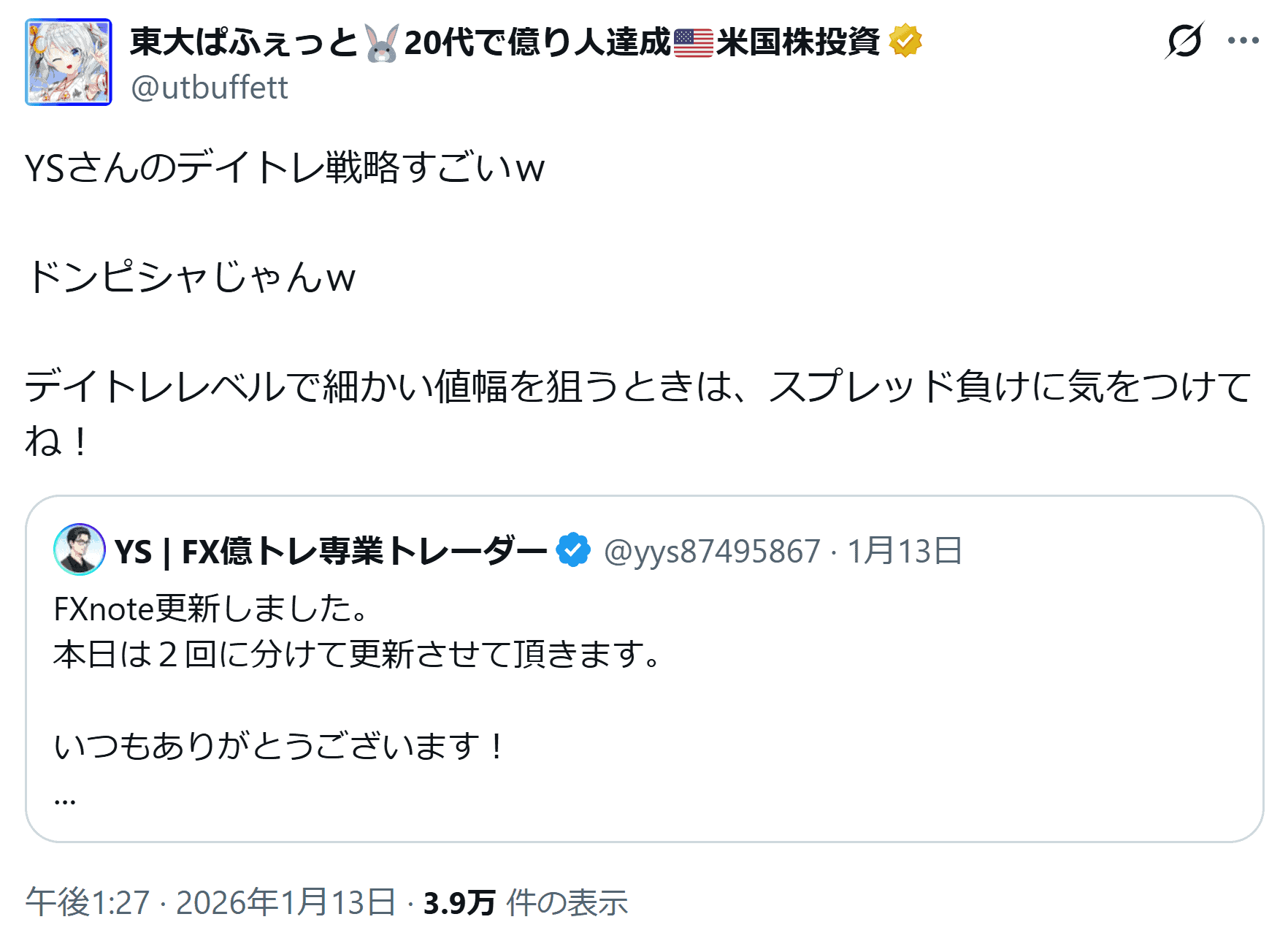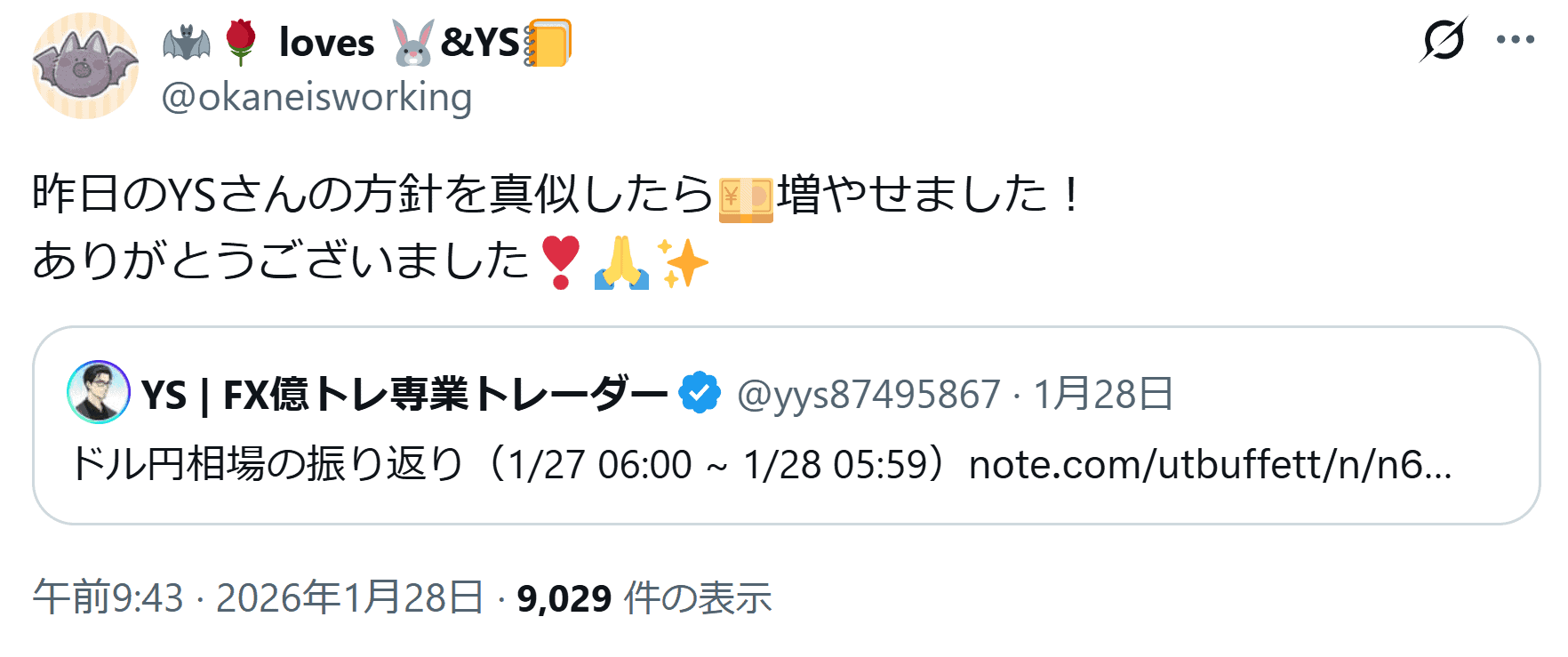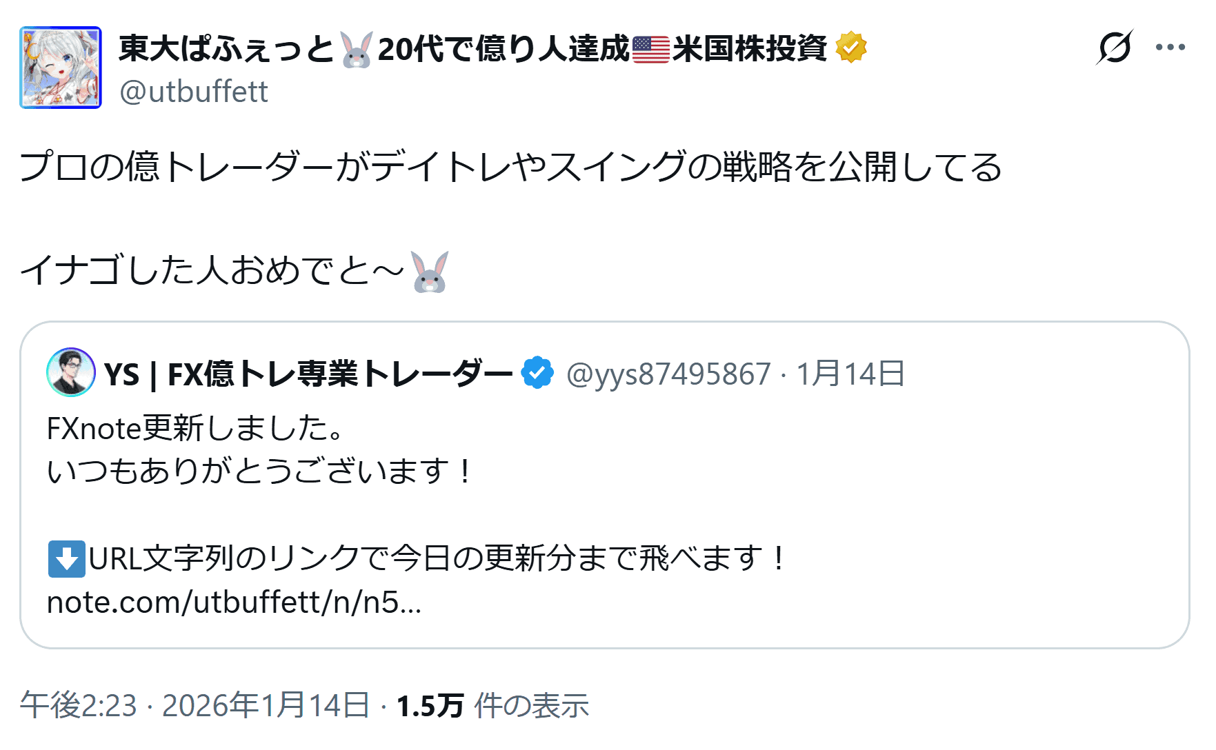 FX note読者の皆さんもしっかり利益取れているみたいで良かった🐰🐰
