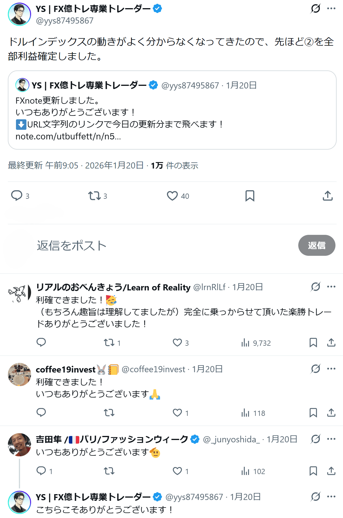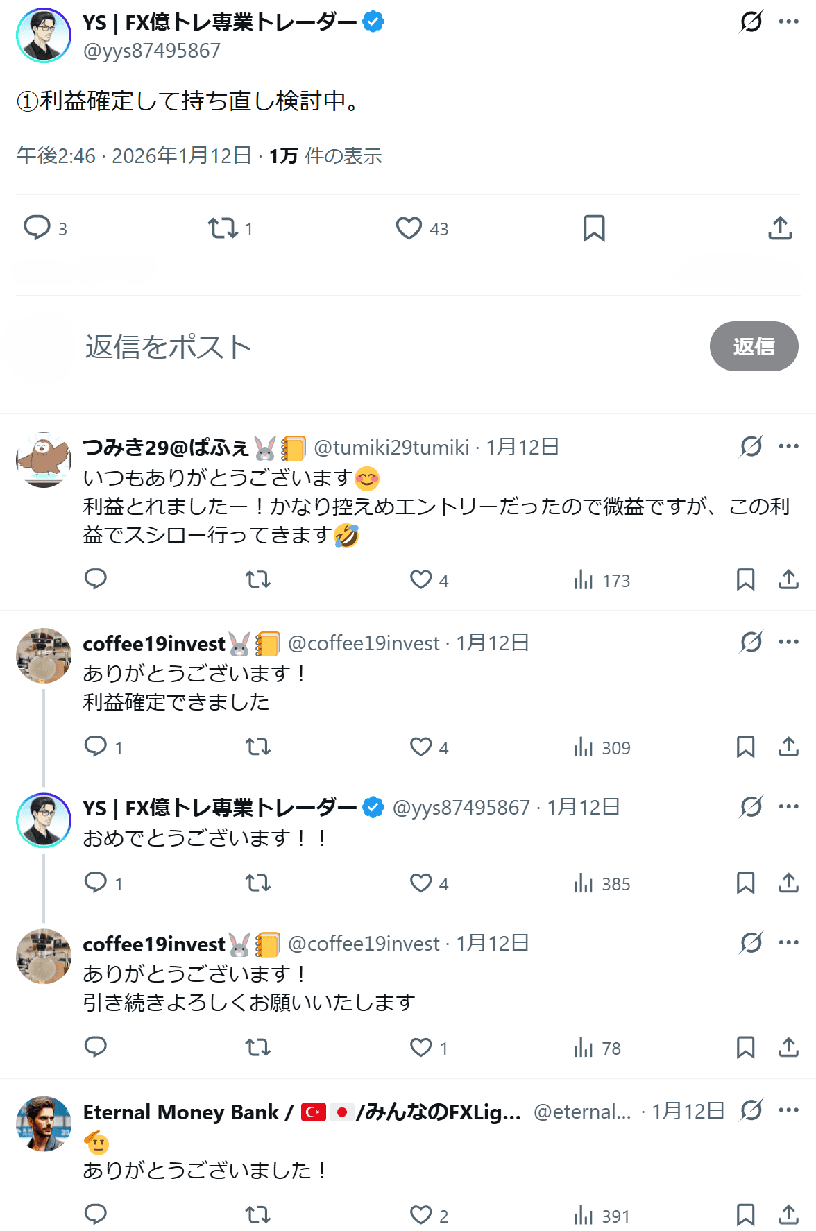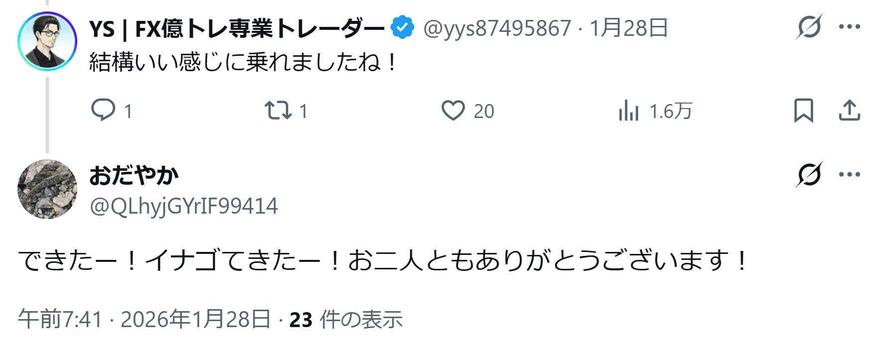 FX note読者の皆さんもしっかり利益取れているみたいで良かった🐰🐰
