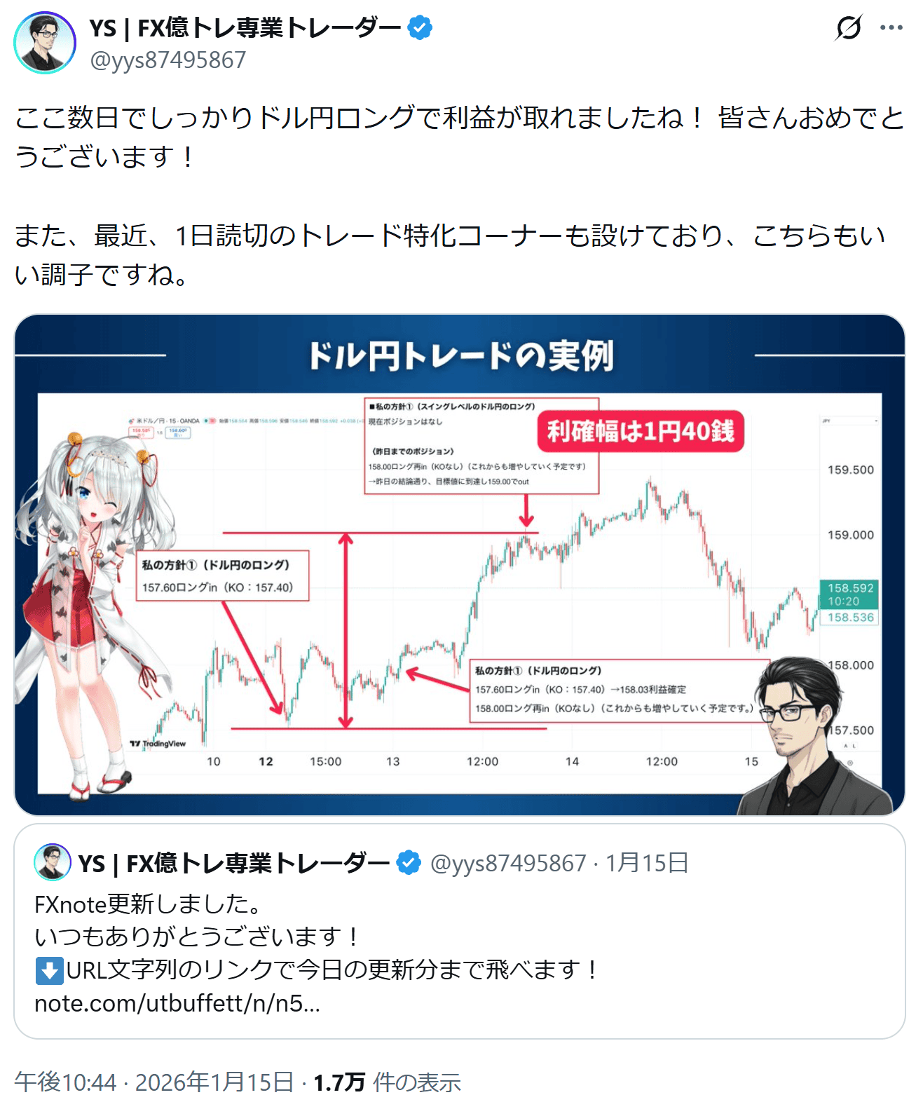そんな要望に答え、相場予測を当てまくりの私と、FX億トレのYSがタッグになってFXnoteを提供!!