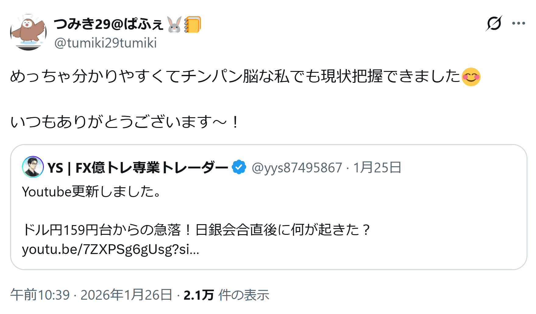 YSさんの相場解説動画もめっちゃ参考になるよ!これ無料で見れるのすごいよね🐰