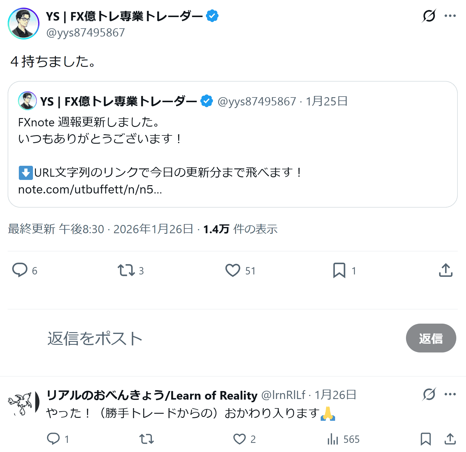 FX noteでもYSさんと共に高い精度のトレードを提供できるように頑張っていきますね!