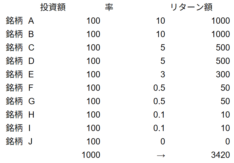 これを私は嫌うので、1銘柄の組み入れ比率は最大でも10%としています。基本的には5%以下にすることが多いです。
