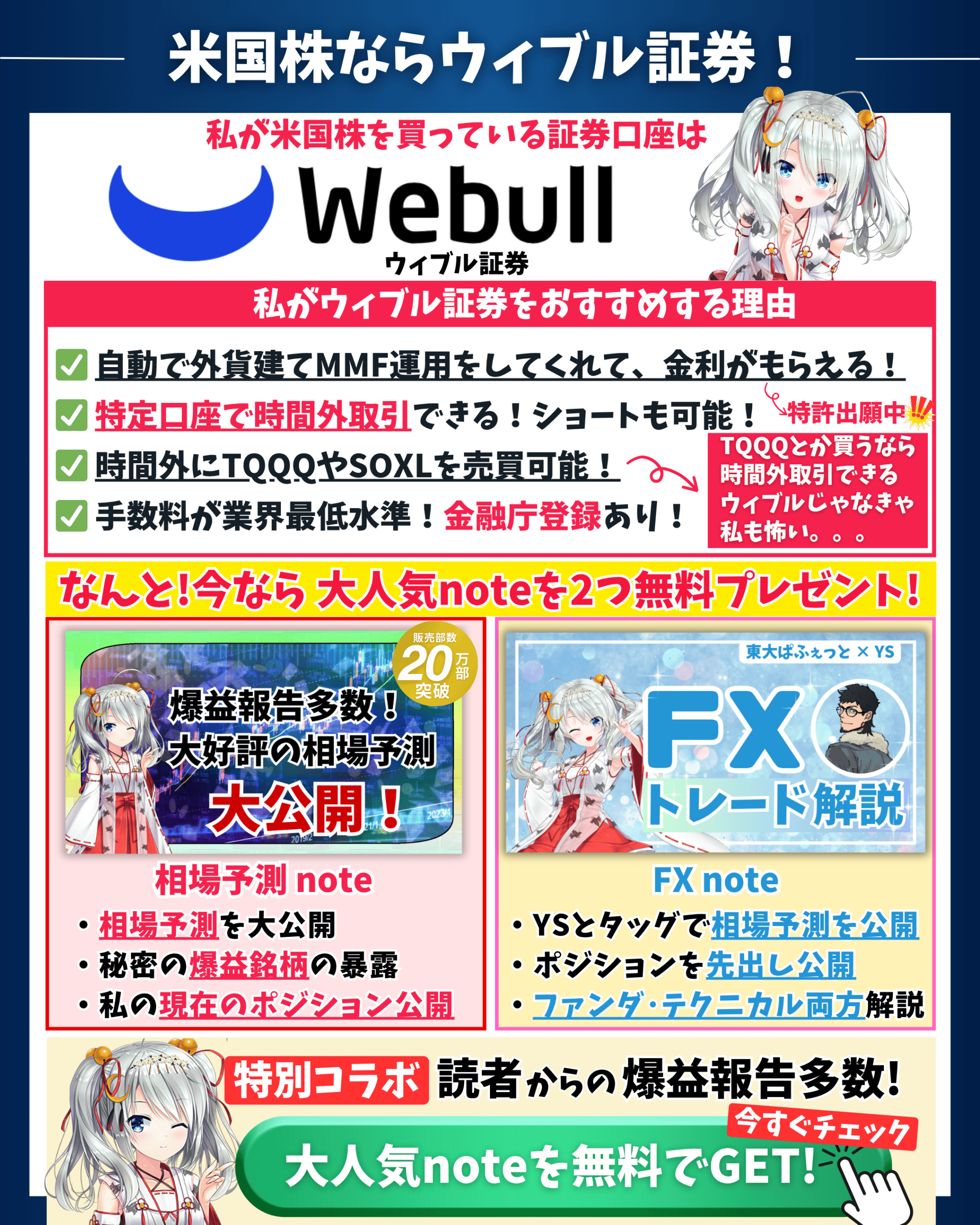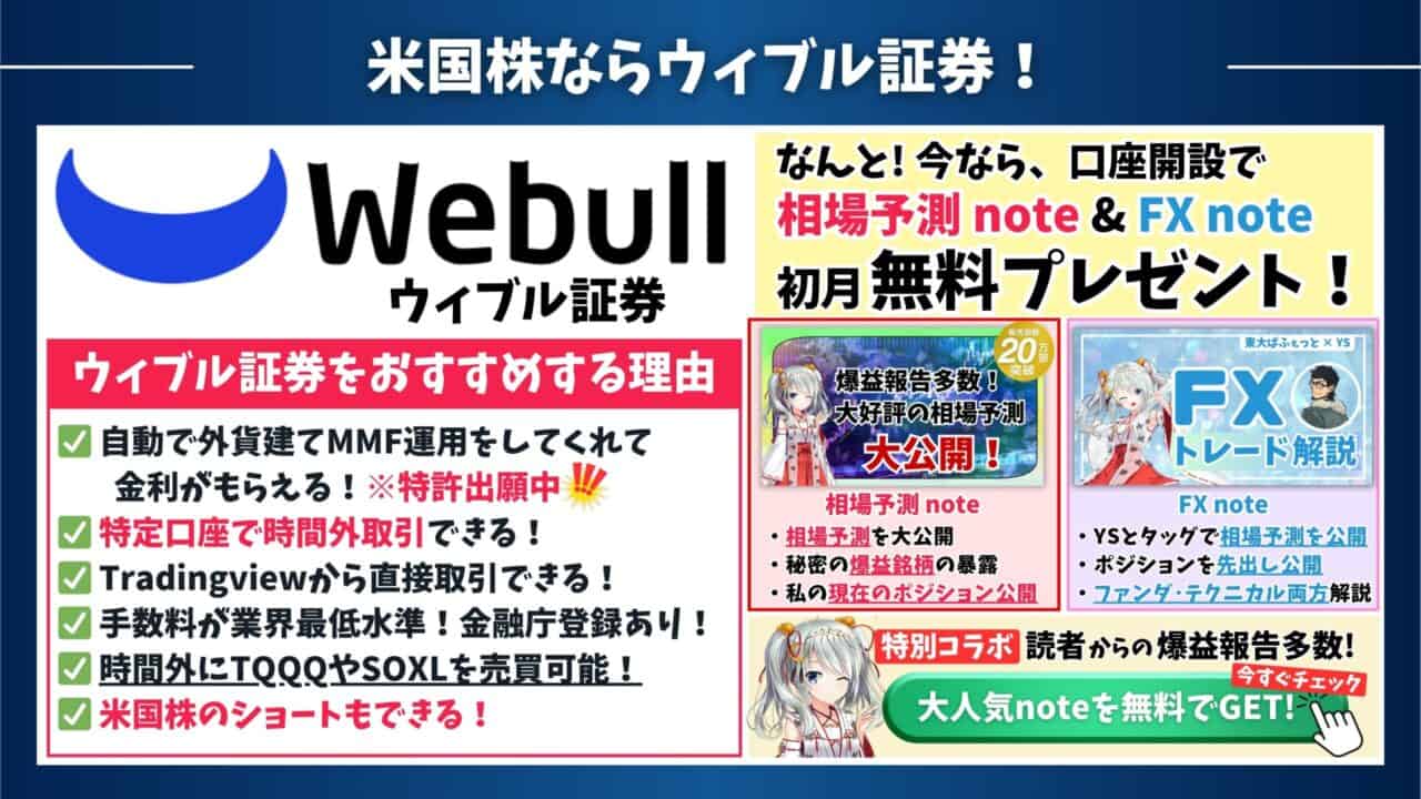 特に、NISAの枠を超えて米国株に投資する人にとって、ウィブル証券は非常に魅力的な証券会社で、相場予測noteの読者さんとの相性も抜群です。