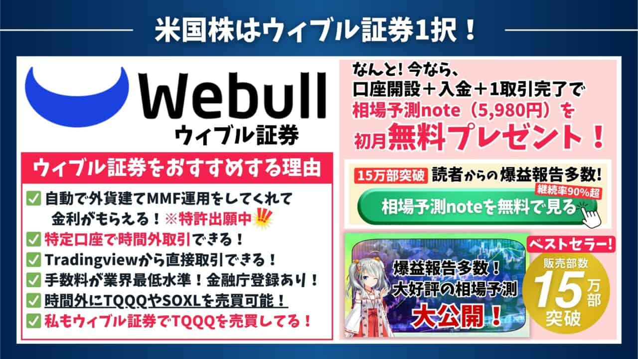特に、NISAの枠を超えて米国株に投資する人にとって、ウィブル証券は非常に魅力的な証券会社で、相場予測noteの読者さんとの相性も抜群です。